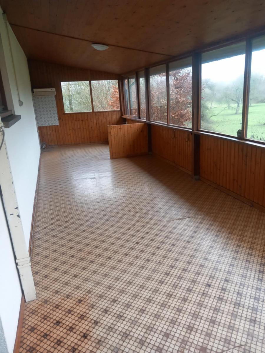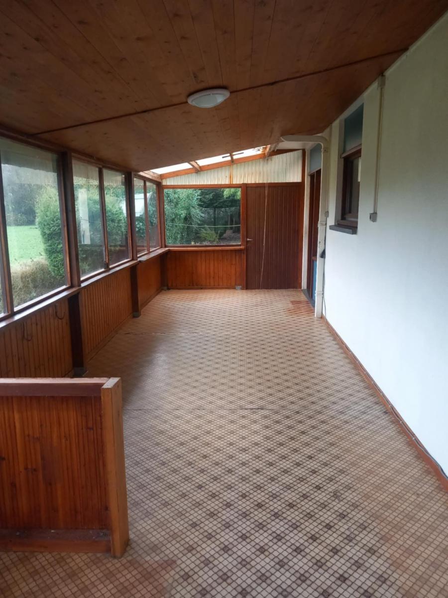 Maison de plain-pied situé dans un cadre verdoyant sise rue de la Fagne 4 à 5660 Fagnolle, cadastrée section A numéro 216D d'une superficie de 18ares 50ca comprenant : hall avec wc, séjour :salon-sam, cuisine, sdb, bureau, 2 chambres et veranda. Sous-sol : cave sur toute la superficie de l'immeuble.