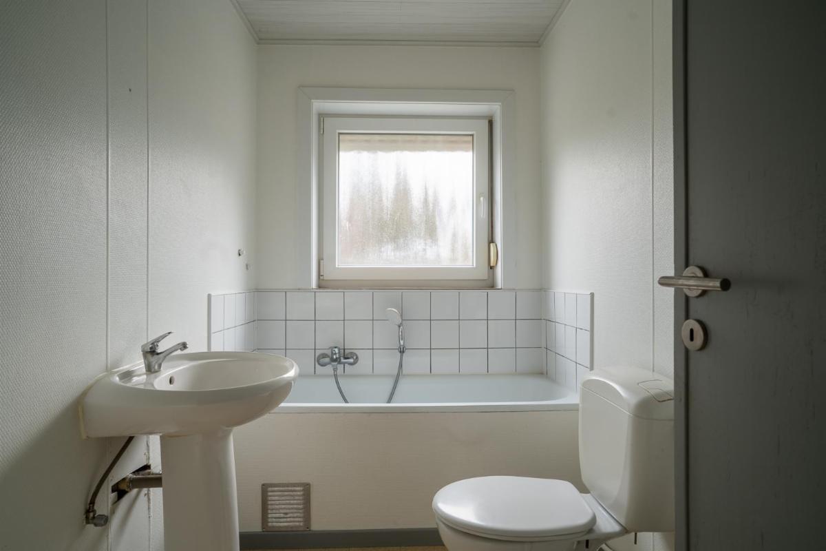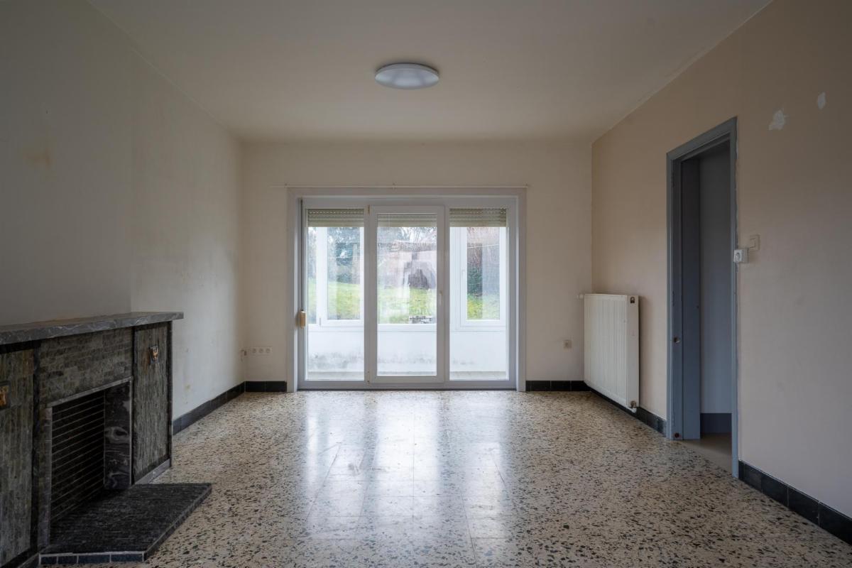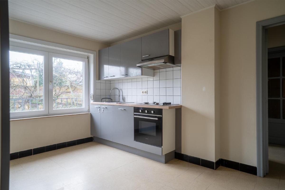 - Au rez-de-chaussée : un hall d'entrée, un living (salon + salle à manger), une cuisine semi équipée, une salle de bain (baignoire, vasque, WC), une grande chambre.
