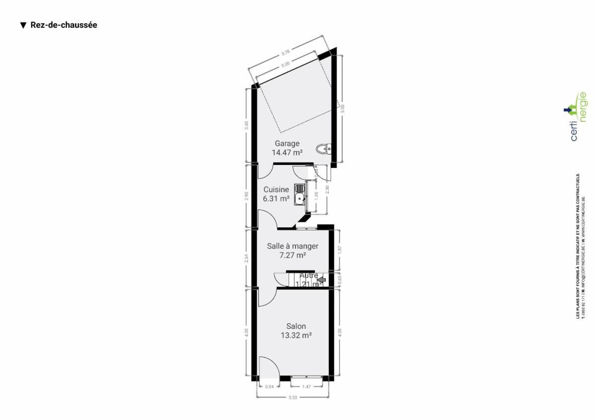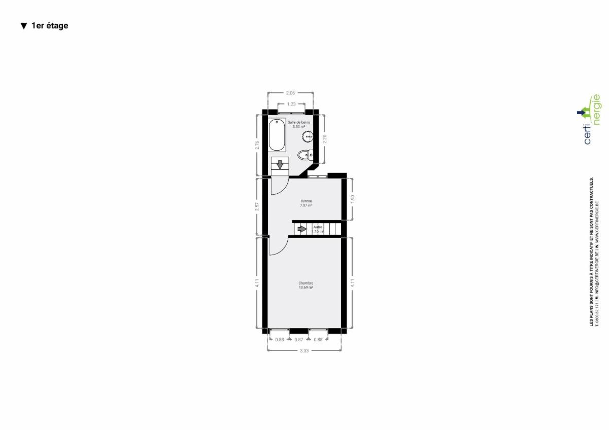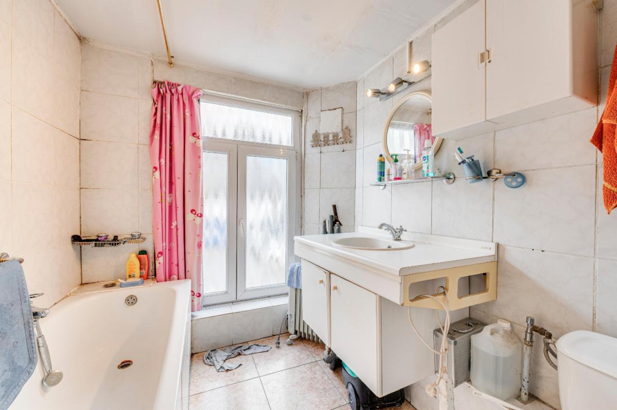 Maison de ville 2 façades à rénover, proche des écoles, commerces et facilités (bus, train). Elle se compose comme suit: un salon de 13m², une salle à manger de 7m², une cuisine et un accès vers le garage / buanderie. Au 1er étage, une chambre de 14m², un bureau de 7m² et une salle de bains avec wc. PEB B, châssis PVC double vitrage.