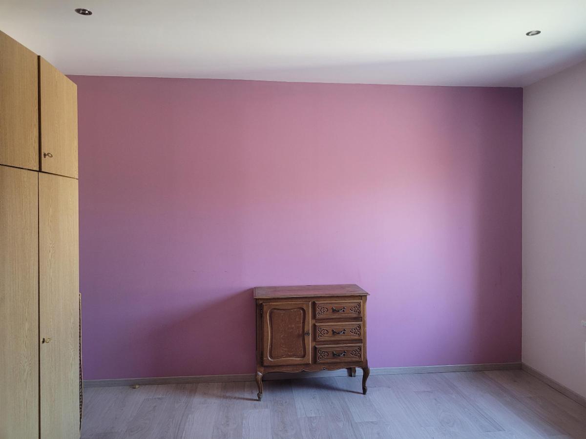 A l'étage : Un petit palier dessert une grande chambre en façade avant et une autre chambre en façade arrière.