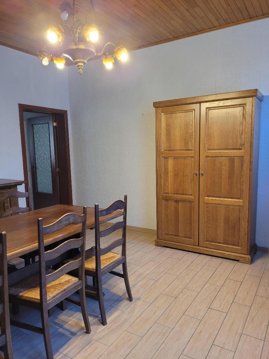 Au rez-de-chaussée : on trouve un salon, une salle à manger, une cuisine équipée récemment rénovée et une salle de douche avec un wc et un lavabo.