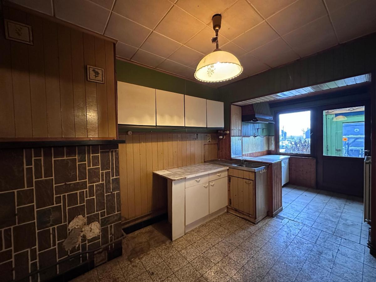 Aspects techniques : châssis pvc double vitrage, chauffage central au gaz de ville (chaudière récente), adoucisseur d'eau. Electricité non conforme, PEB E (352 kWh/m².an) n°20250927007527.
