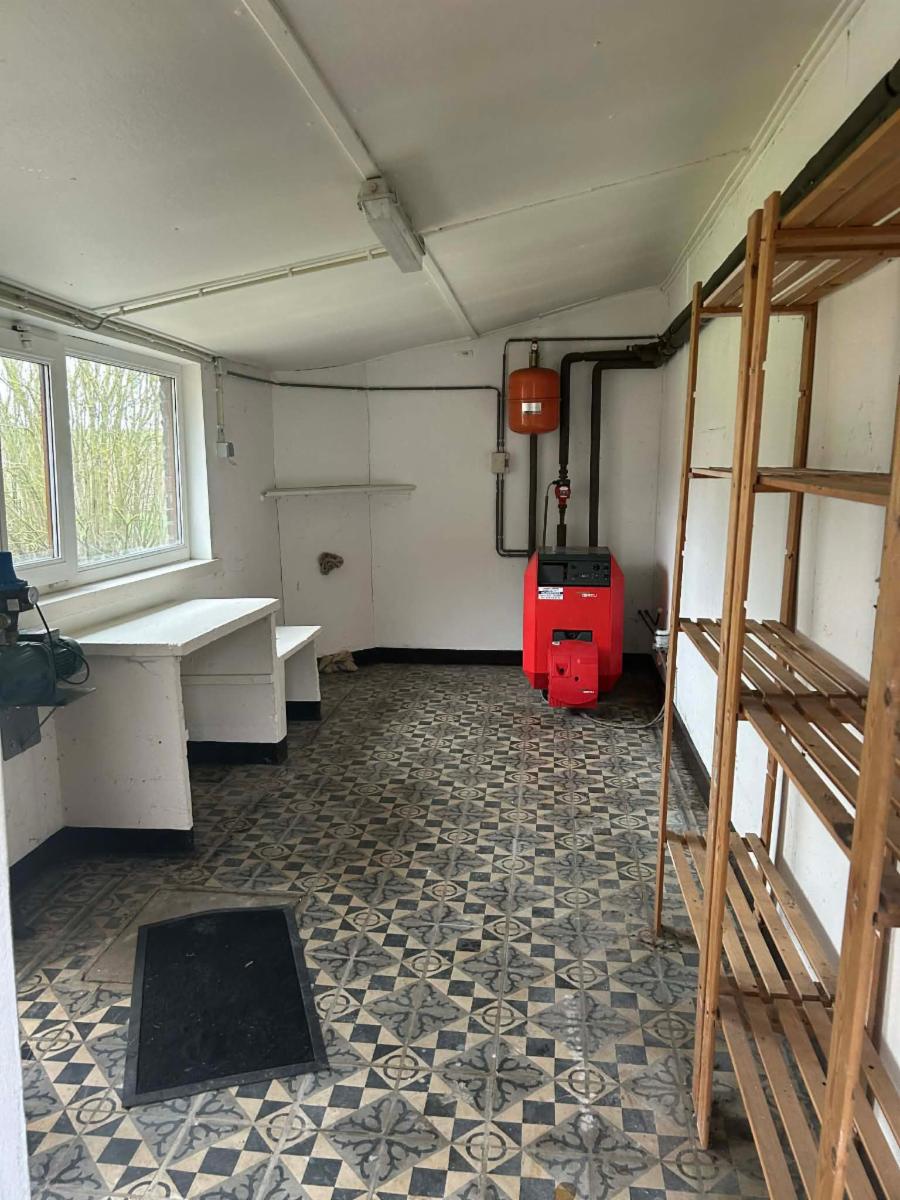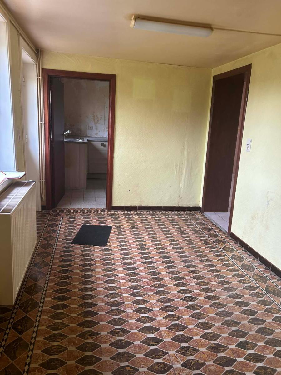 Maison d'habitation comprenant une pièce centrale de 25 m², une pièce sur la gauche de 25m², une pièce arrière (WC, cabine de douche, un lavabo et coin buanderie) avec accès vers le grenier, petite cuisine équipée de 2012 (frigo, bac évier, lave-vaisselle, four, traque vitro, hotte et emplacement micro-ondes) avec chauffe-eau électrique individuel sous l'évier, une pièce à usage de chaufferie (chaudière OERTI de 2001 avec entretien régulier), un groupe hydro, une pièce avec cuve à mazout (2.250 litres). Chauffage central au mazout, châssis en PVC double vitrage. PEB : G, rapport électrique non conforme, chauffage central au mazout, superficie totale 6 ares 51, revenu cadastral : 296 euros. Visite le samedi entre 10 et 12h sur RDV uniquement donné par l'Etude au 068/28.20.80