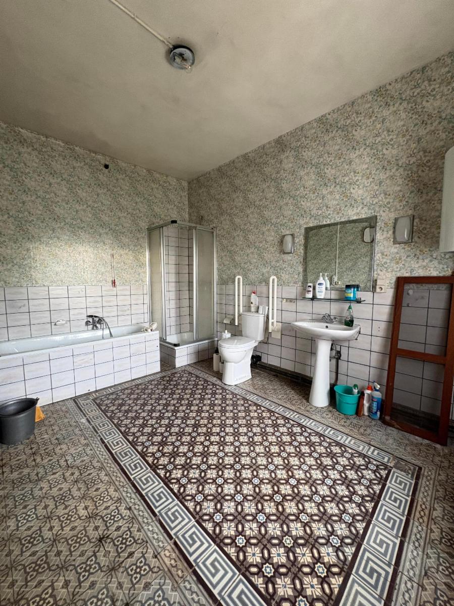 Au rez-de-chaussée : salon, deux chambres, salle à manger, salle de bain équipée (WC, baignoire, douche, lavabo, boiler électrique), véranda/serre