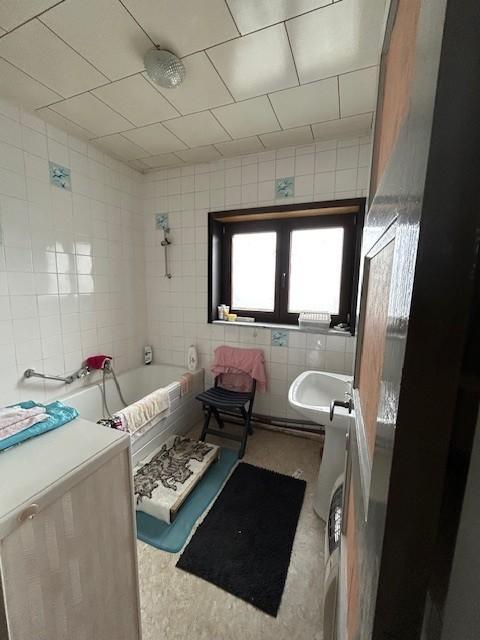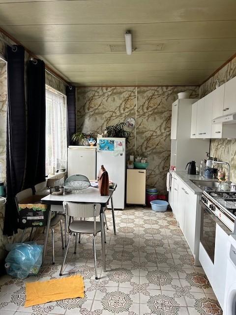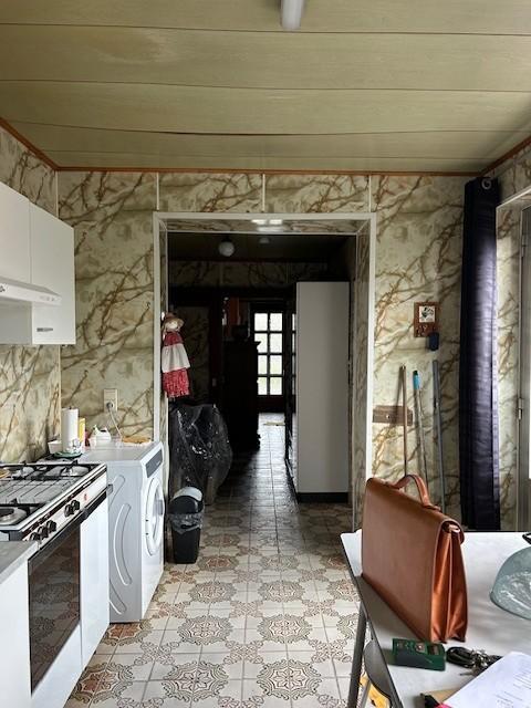 Rez-de-chaussée : Hall d'entrée, salon, living, cuisine, 2 remises dont une avec cuve à mazout.