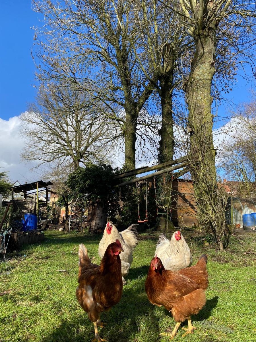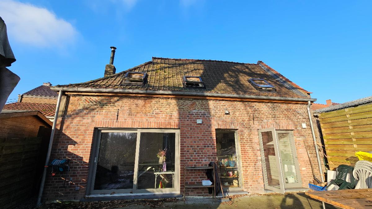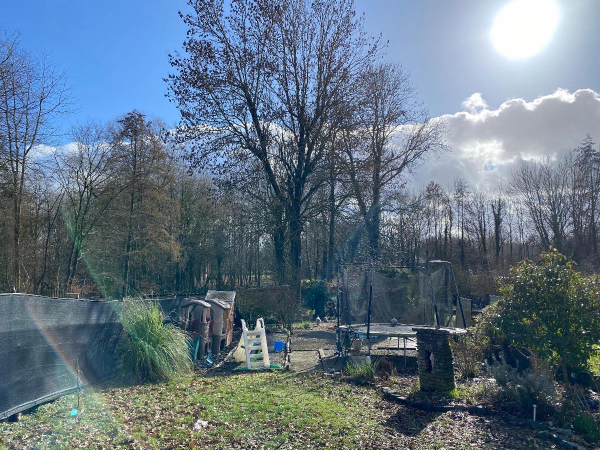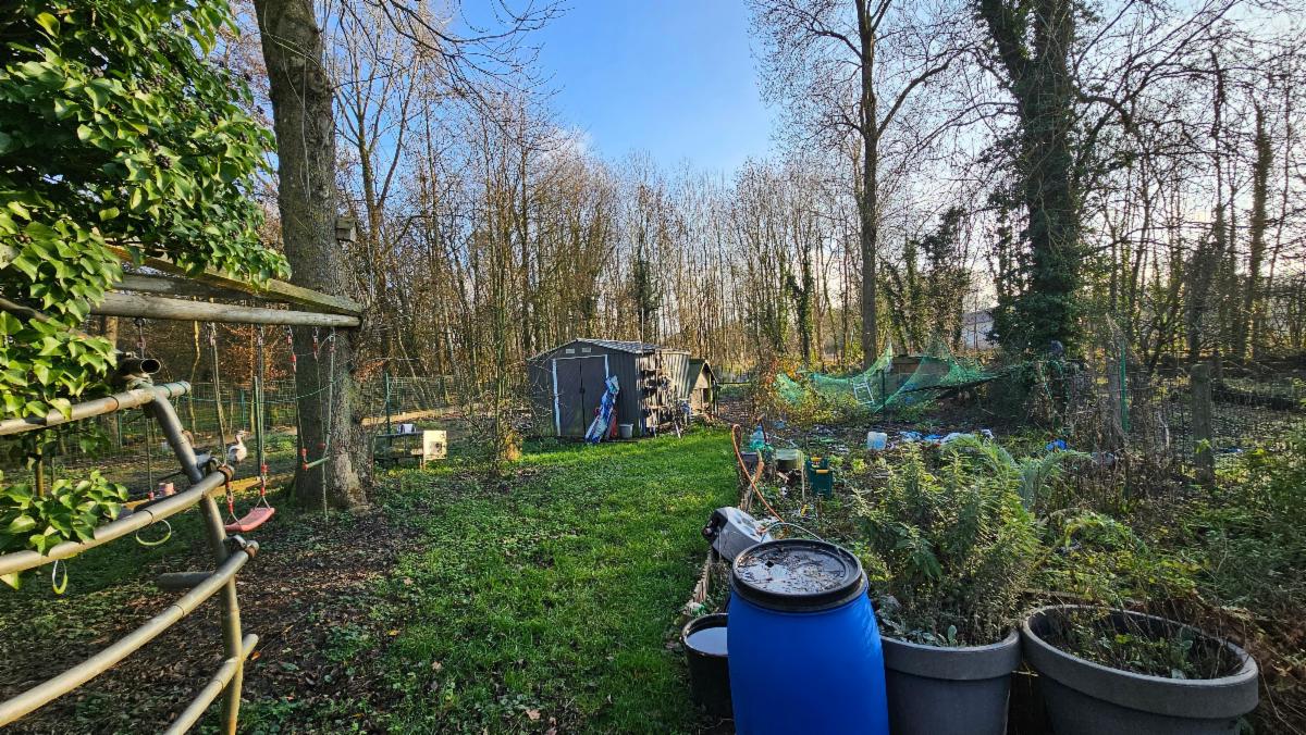 A l'extérieur : jardin clôturé et bien exposé en longueur à l'arrière de la maison avec barbecue en briques, deux abris de jardin et une cour intérieure