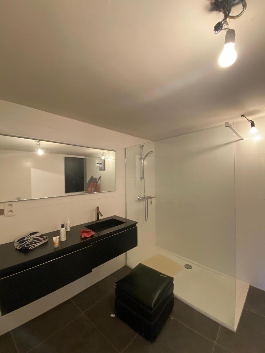 Au rez-de-chaussée : salon, buanderie, salle de bain (vasque, douche et bain), cuisine équipée très lumineuse (lave vaisselle, micro-onde et frigo (le piano ne fait pas partie de la vente))