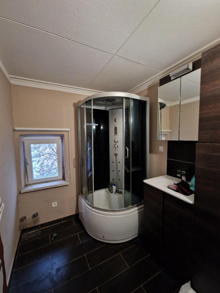 Au premier étage, la maison dispose d’une salle de bain et d’une chambre, qui mène elle-même à une seconde chambre mansardée située au deuxième étage.