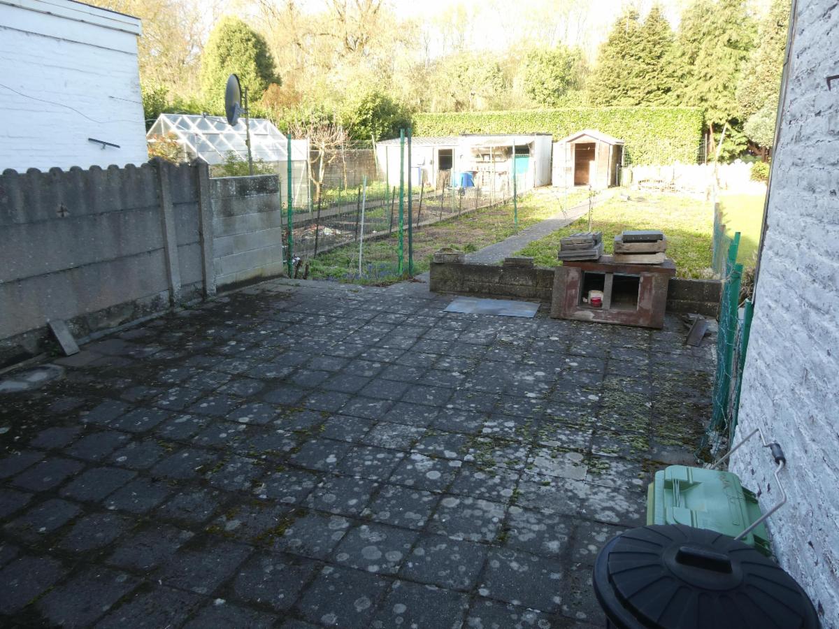 À l’arrière, un jardin clôturé avec terrasse permet de profiter d’un espace extérieur agréable.