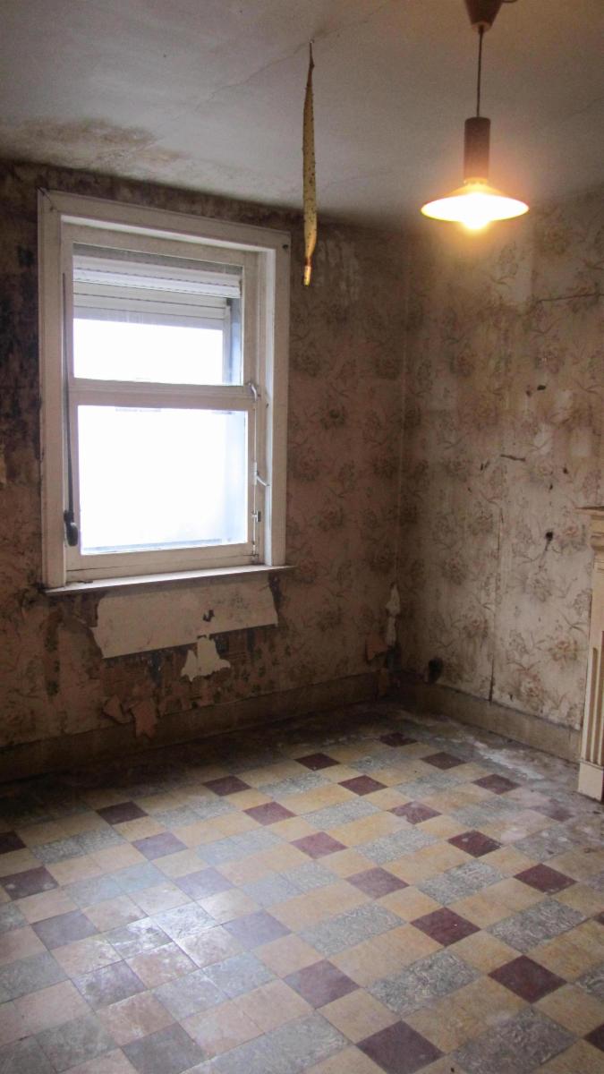 Rez-de-chaussée : Salon, salle à manger, living, cuisine non équipée, deux chambres.