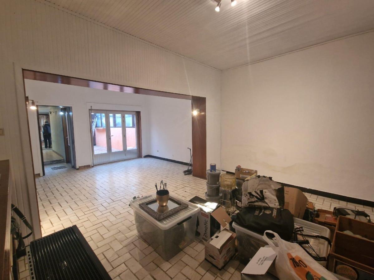 Maison d'habitation à vendre. Elle comprend, au sous-sol : une cave ; au rez-de-chaussée : un hall, une cuisine, une arrière-cuisine, un salon, une salle à manger, un living, une salle de bains, un WC, une buanderie ; à l’étage : trois chambres et un grenier aménageable.