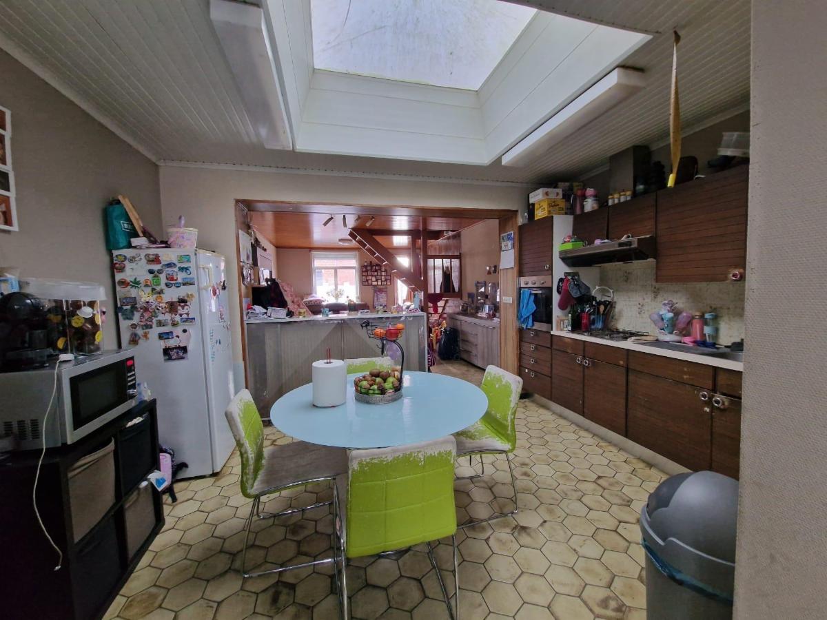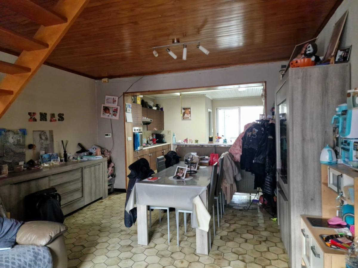 Maison d'habitation à vendre. Elle comprend, au sous-sol : une cave ; au rez-de-chaussée : une cuisine, un salon, une salle à manger, une salle de bains, un WC, une buanderie, un garage, une véranda, une remise ; à l’étage : deux chambres et un grenier non aménagé.