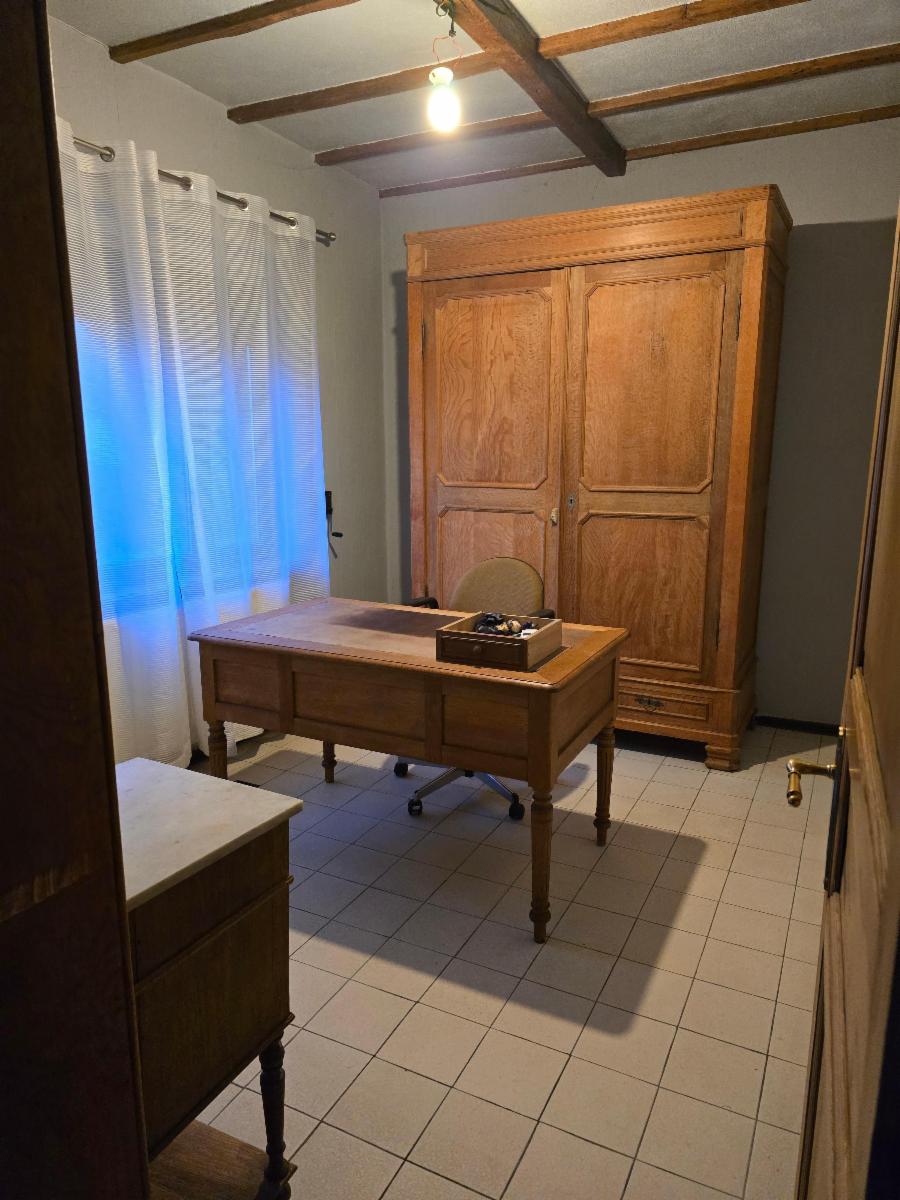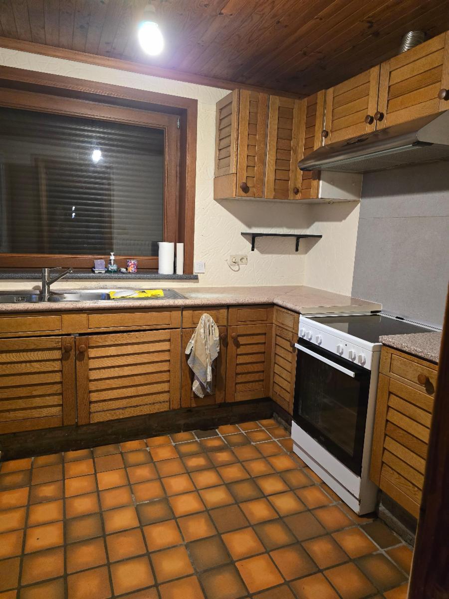 Rez: Hall, Bureau, salle à manger, véranda, cuisine (semi-équipée), 2 chambres, salle de bain garage.