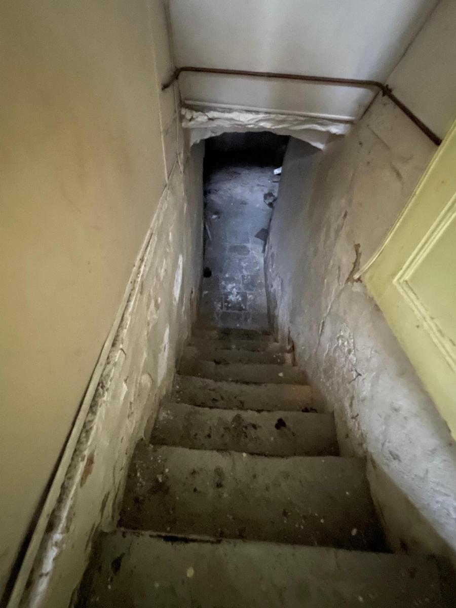 Au rez-de-chaussée : un sas d’entrée, un petit salon, une petite salle-à-manger, un séjour, une cuisine non équipée, une salle de bains (baignoire et lavabo), et un wc,