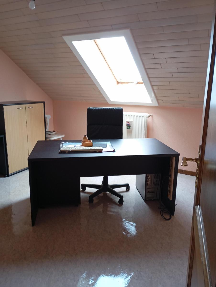 Rez-de-chaussée : couloir, salon et salle à manger, cuisine, débarras, WC, bureau.