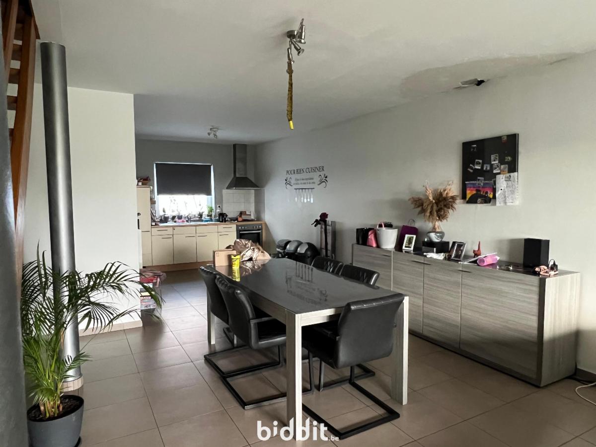 Rez-de-chaussée : Hall d’entrée avec WC séparé, living, cuisine équipée.