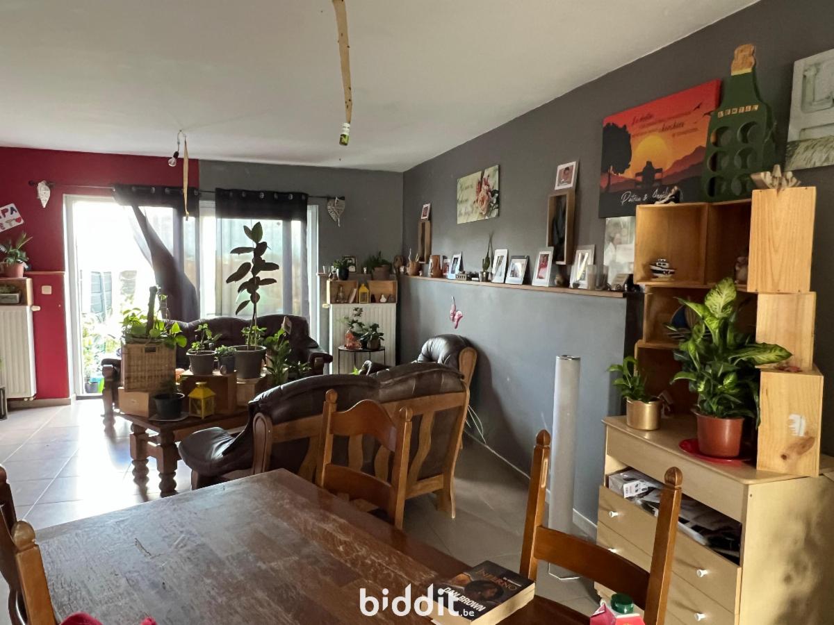 Rez-de-chaussée : Hall d’entrée avec WC séparé, living, cuisine équipée.