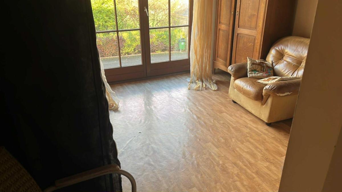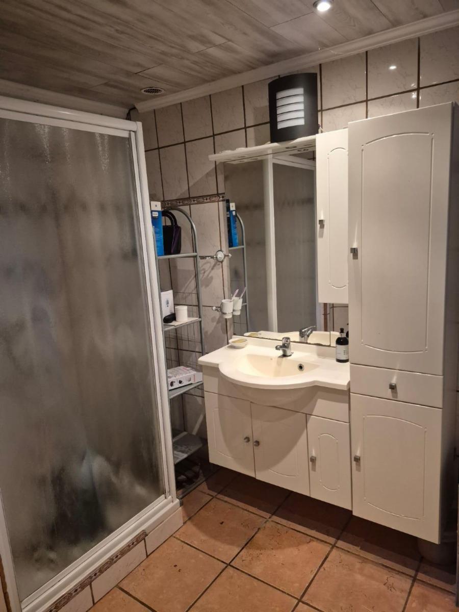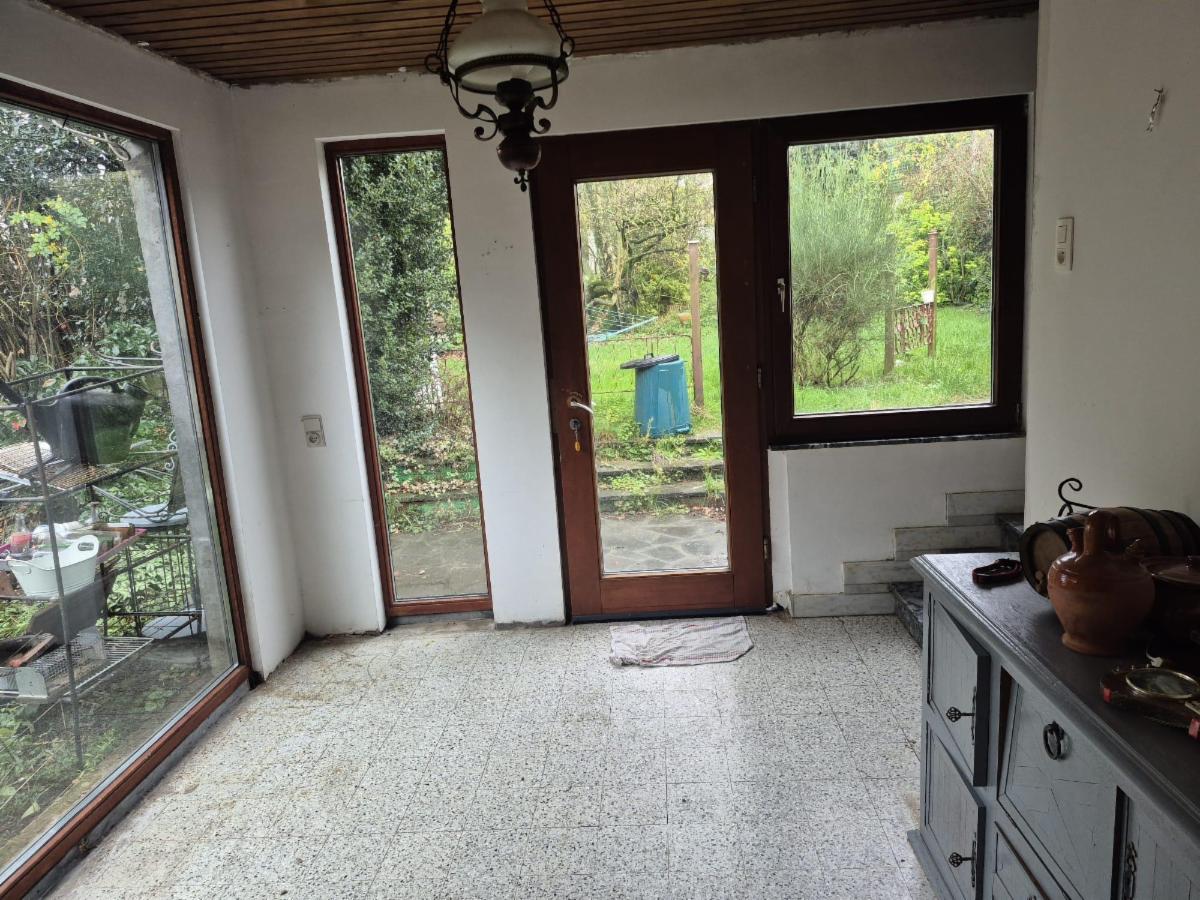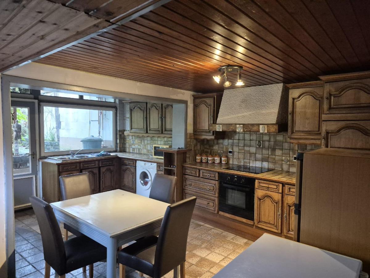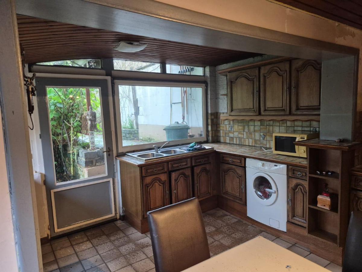 RDC : salle à manger, salon, pièce arrière donnant sur le jardin, cuisine, salle de douche,
