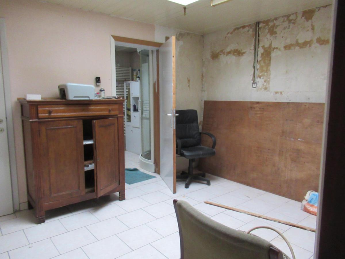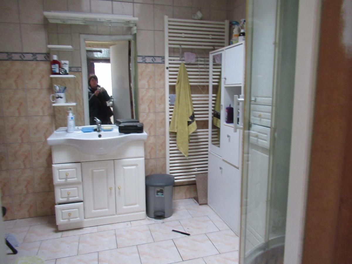RDC: salon, living, cuisine semi-équipée avec accès jardin, salle à manger, salle de bains avec évier wc et douche