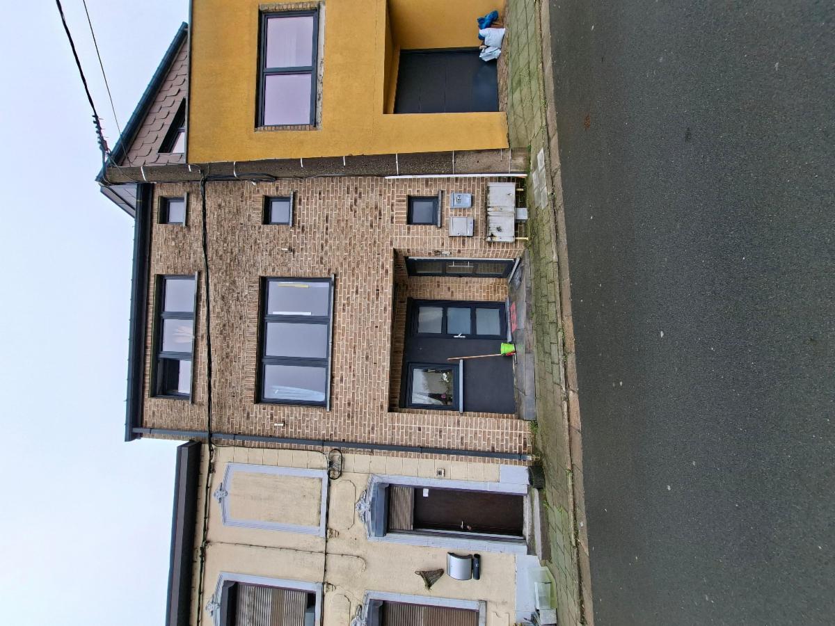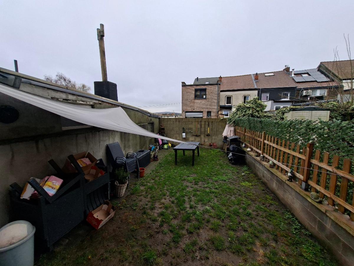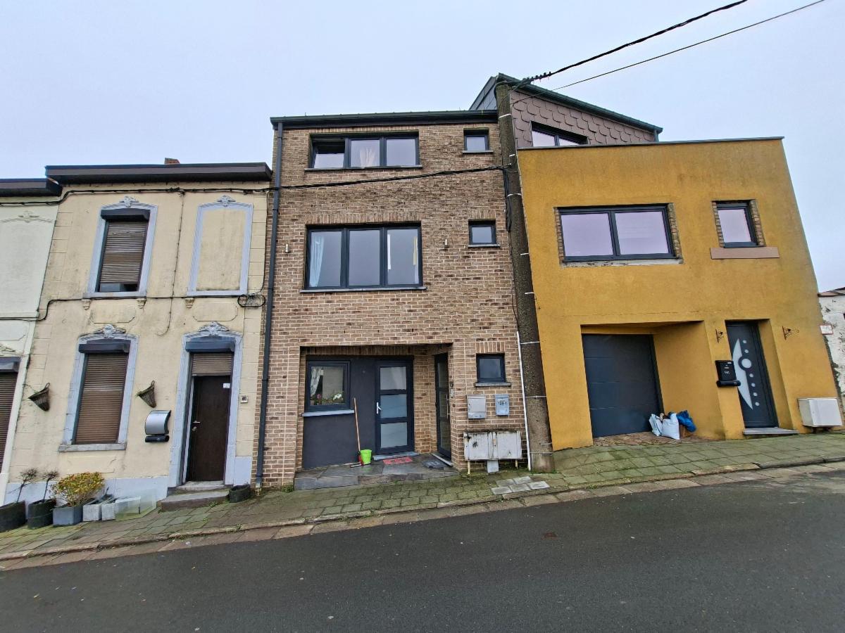 Ce bien est aménagé en 2 entités en infraction au niveau de l'urbanisme, il est vendu comme maison unifamilale . COMPOSITION : REZ-DE-CHAUSSEE : petit living, cuisine semi-équipée, wc avec lavabo et buanderie, 1er ETAGE : 1 grande chambre, un dressing, salle de douche, grenier : 1 chambre; 2ème ETAGE : pièce de vie avec cuisine ouverte, salle de douche, 1 chambre, wc buanderie. Chauffage central au gaz de ville, châssis DV en PVC, raccordée à l'égout. Superficie : 94 ca Revenu cadastral : 1.079 €. Occupée par locataire.