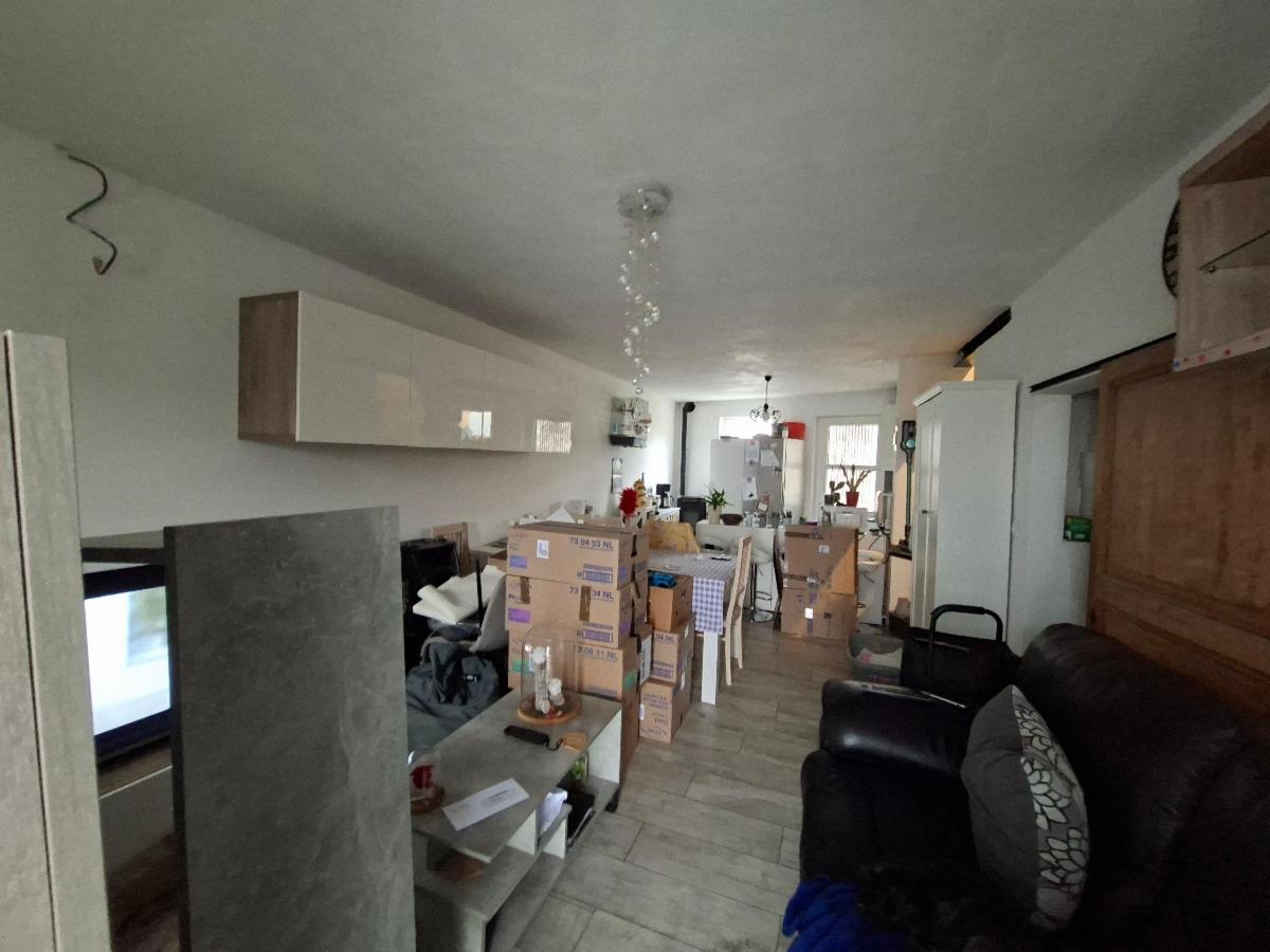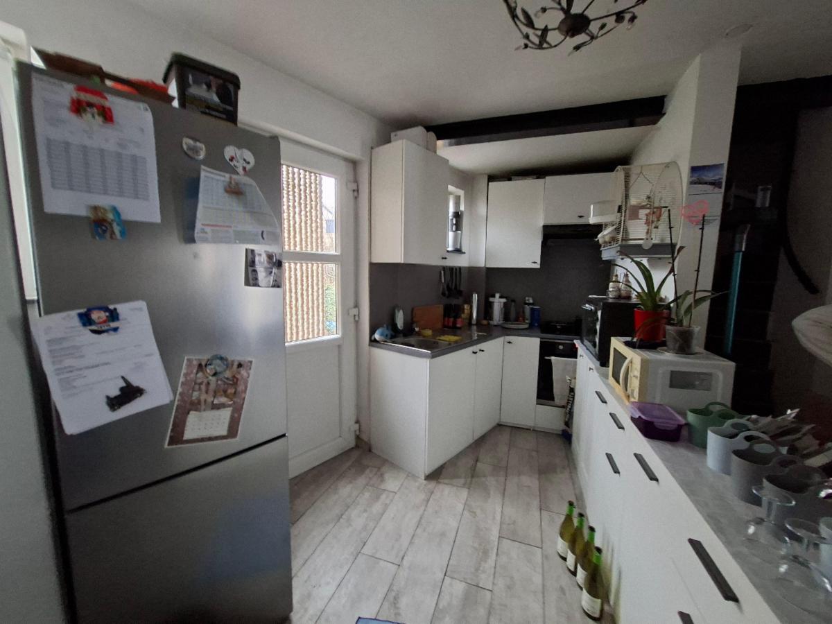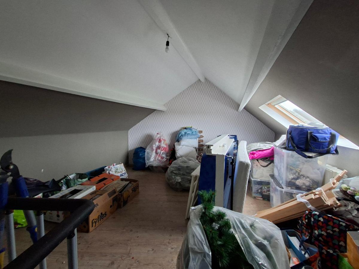 Ce bien est aménagé en 2 entités en infraction au niveau de l'urbanisme, il est vendu comme maison unifamilale . COMPOSITION : REZ-DE-CHAUSSEE : petit living, cuisine semi-équipée, wc avec lavabo et buanderie, 1er ETAGE : 1 grande chambre, un dressing, salle de douche, grenier : 1 chambre; 2ème ETAGE : pièce de vie avec cuisine ouverte, salle de douche, 1 chambre, wc buanderie. Chauffage central au gaz de ville, châssis DV en PVC, raccordée à l'égout. Superficie : 94 ca Revenu cadastral : 1.079 €. Occupée par locataire.