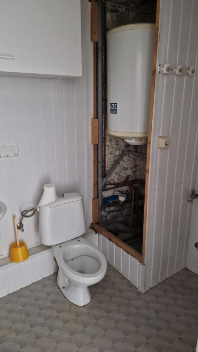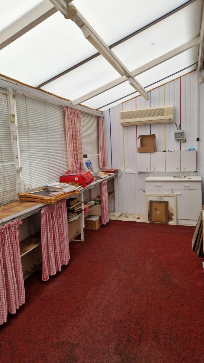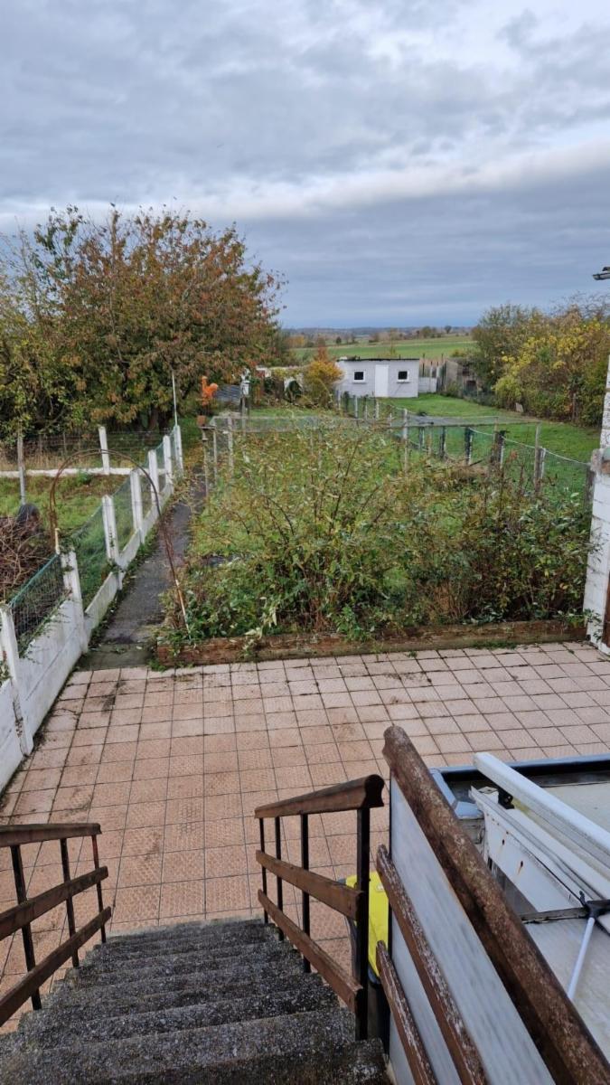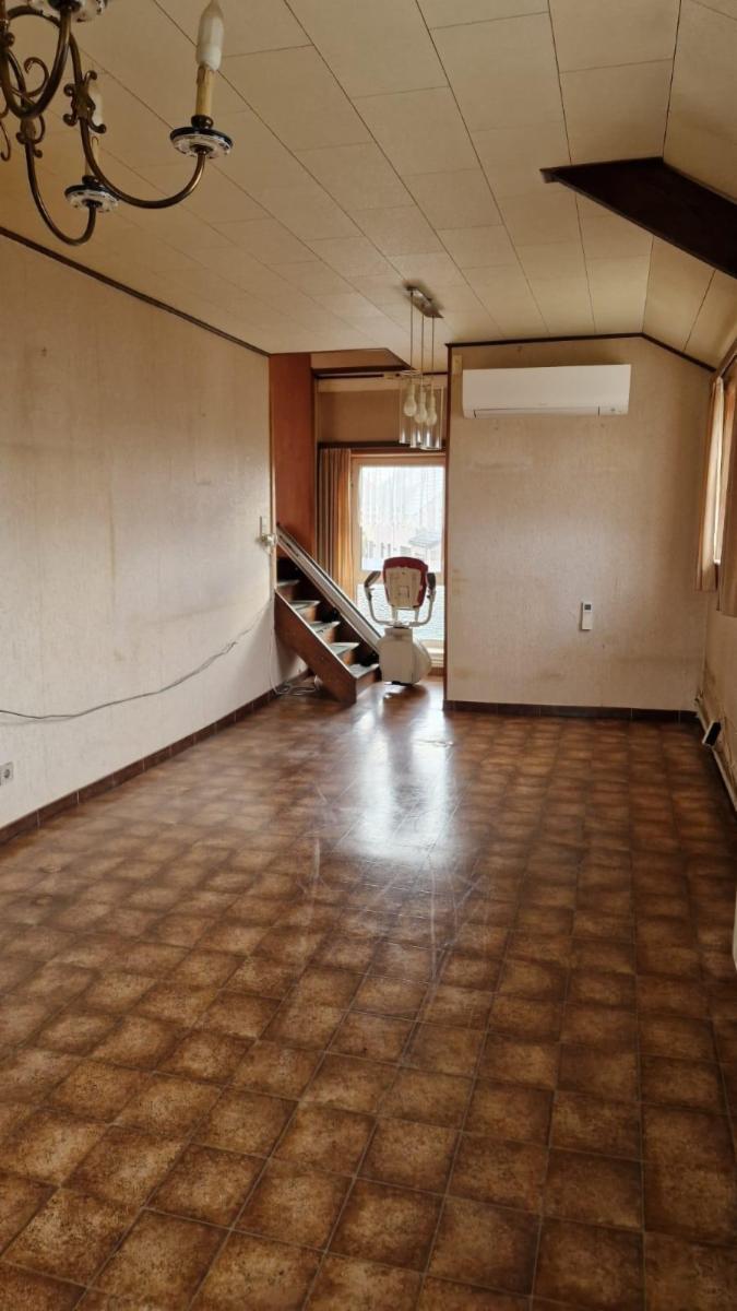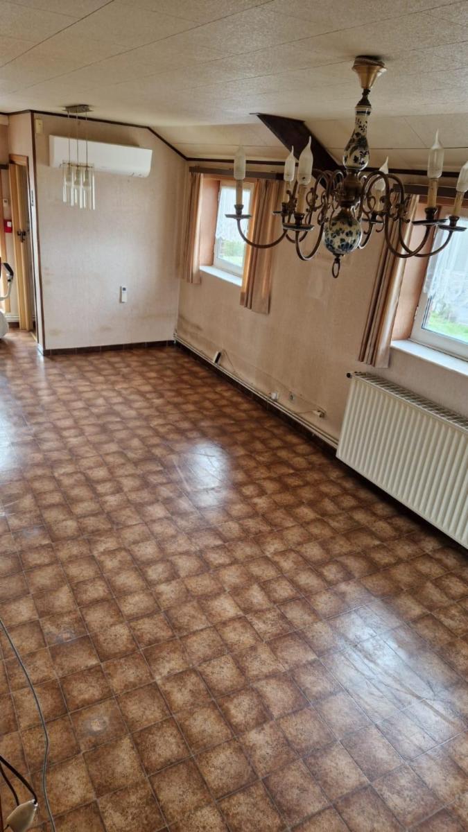 Rez de chaussée: 3 vastes pièces, coin cuisine, coin wc avec petit évier, véranda.