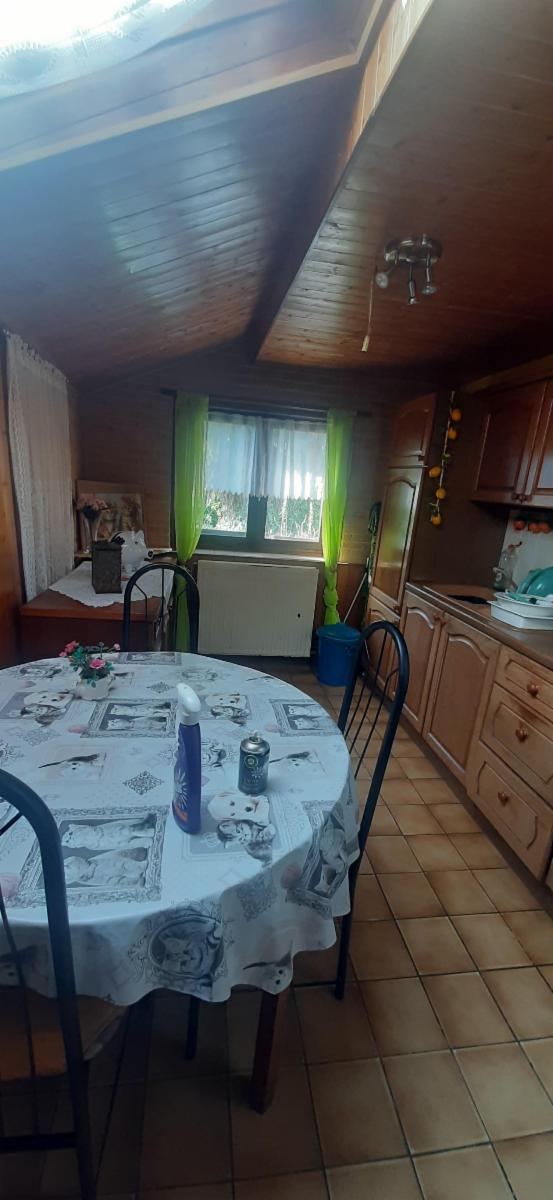 Equipements et Extérieurs: cour, jardin, passage latéral, garage, châssis en bois simple vitrage, chauffage central au mazout, compteur électrique simple horaire, Maison à rénover.