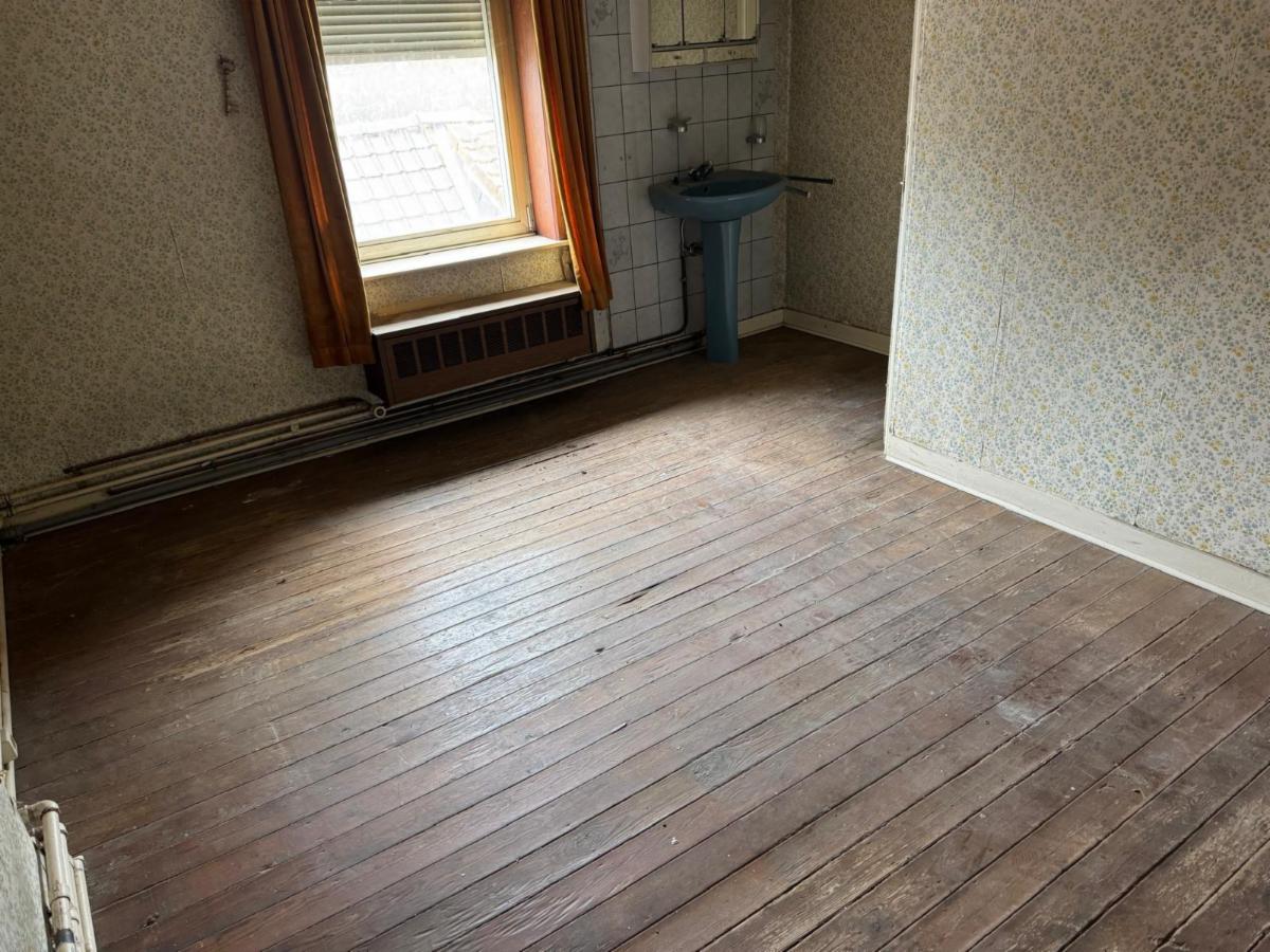 - au rez : salon - salle-à-manger, cuisine (évier, four), arrière cuisine, salle-de-bain (wc, évier, douche), local chaudière