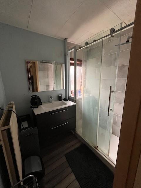 Maison 3 façades sur un terrain d'une contenance de 93 centiares, comprenant au RDC : hall d'entrée, WC, espace séjour comprenant salon et salle à manger, cuisine équipée. A l'étage : 3 chambres et une salle de bain (douche). Au sous-sol : cave avec accès à l'extérieur. Petit jardin, grenier et garage séparé.