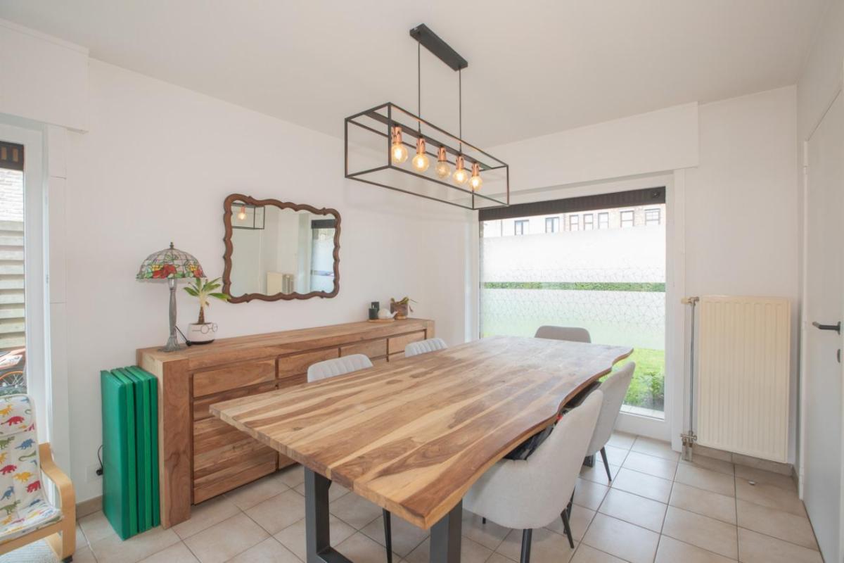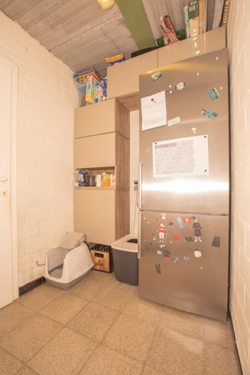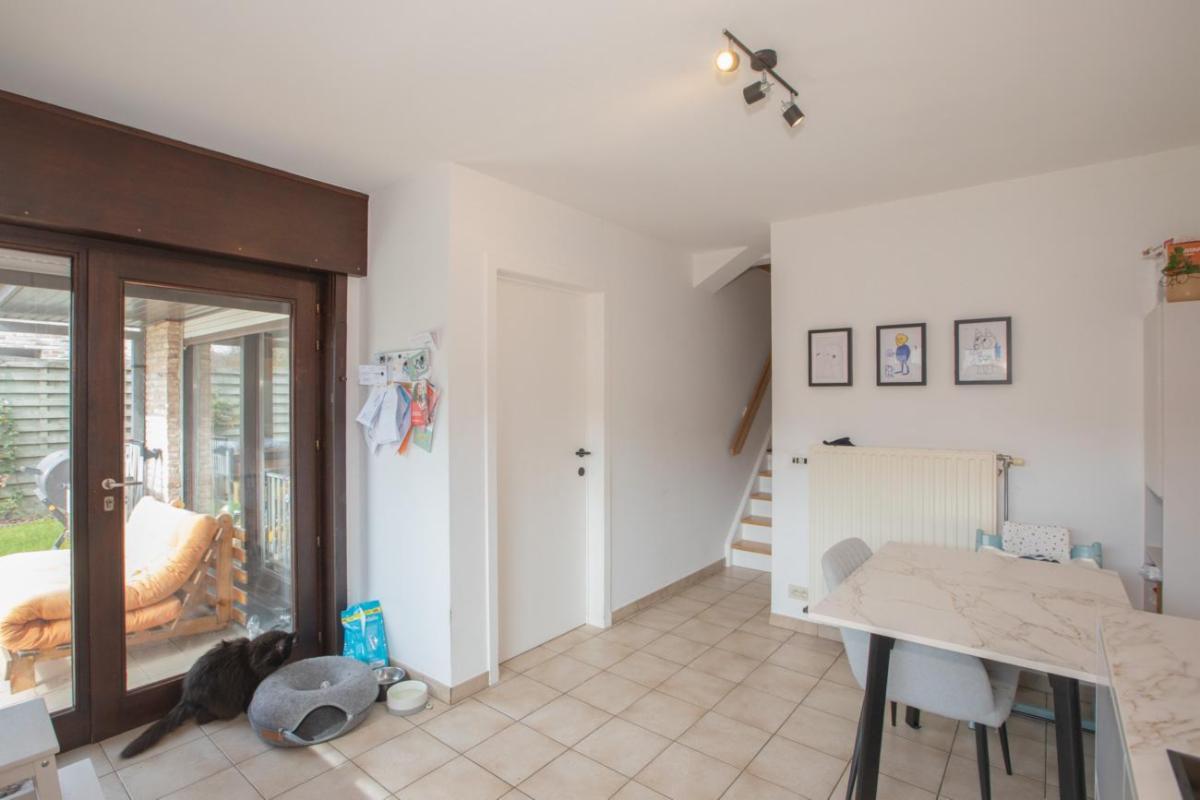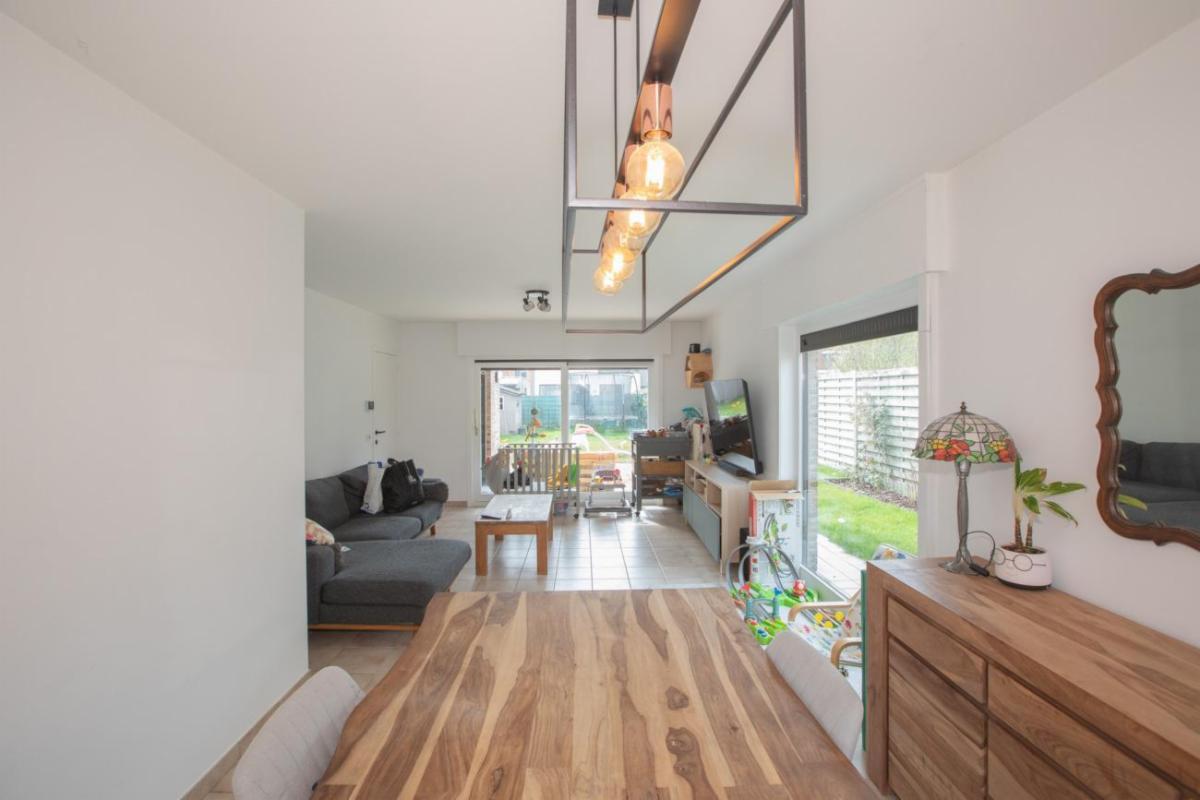 En entrant dans la maison, vous arrivez dans le hall d’entrée avec toilette pour invités. De là, vous accédez au spacieux et lumineux séjour, offrant une belle vue sur le jardin grâce à ses grandes baies vitrées. La cuisine entièrement équipée avec débarras se trouve juste à côté.
