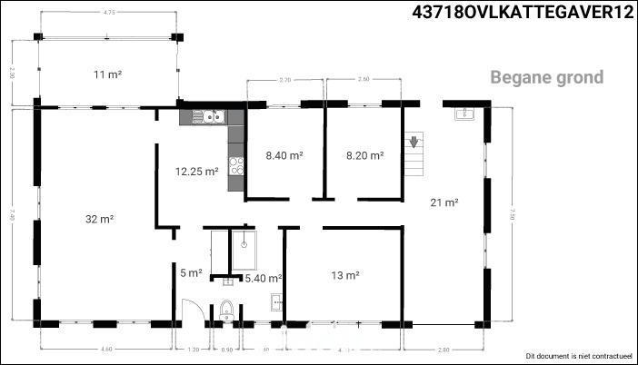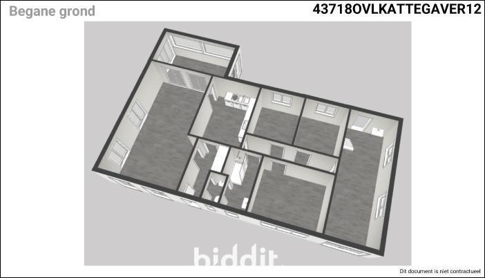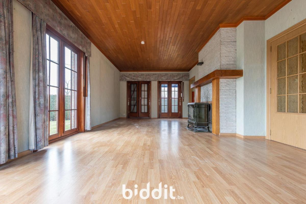 La maison se compose actuellement d'un rez-de-chaussée. Au rez-de-chaussée, vous trouverez un hall d'entrée avec des toilettes séparées, un espace de vie lumineux avec une véranda attenante et une cuisine attenante, tous deux donnant sur la verdure environnante, ainsi qu'un garage spacieux.