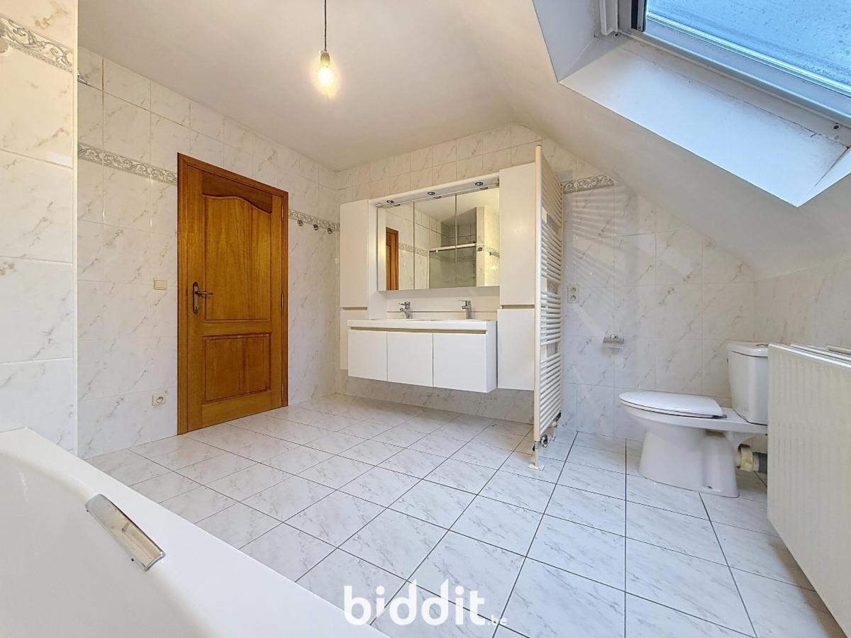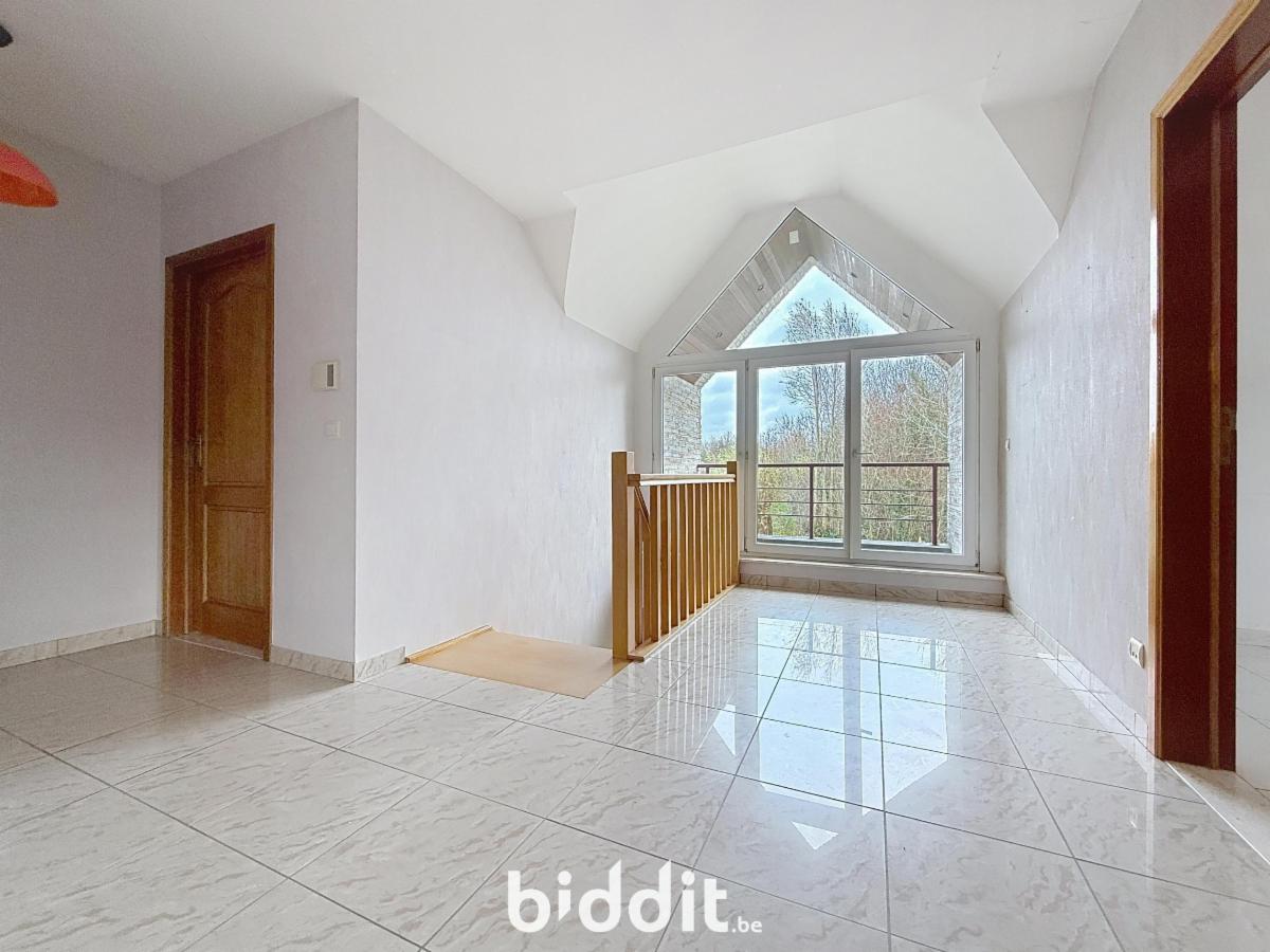 Cette maison individuelle est située dans un environnement verdoyant, à proximité de la R4. Au rez-de-chaussée, vous trouverez un hall d'entrée avec une toilette séparée, un grand salon lumineux, ainsi que la cuisine avec buanderie/débarras attenant et un garage très spacieux. À l'étage, la maison dispose d'un hall de nuit, de quatre chambres et d'une salle de bains spacieuse. La maison est également équipée de panneaux solaires. L'installation électrique et les panneaux solaires ont été déclarés conformes et aucune rénovation n'est requise, car la maison dispose déjà du label EPC B. G score: A P score: A