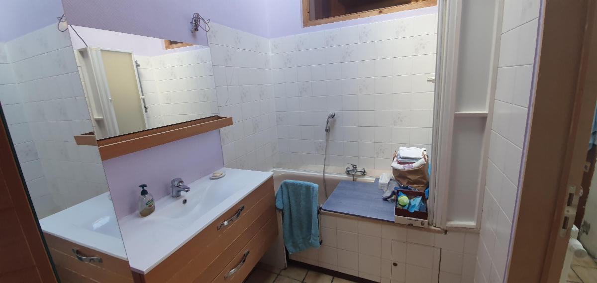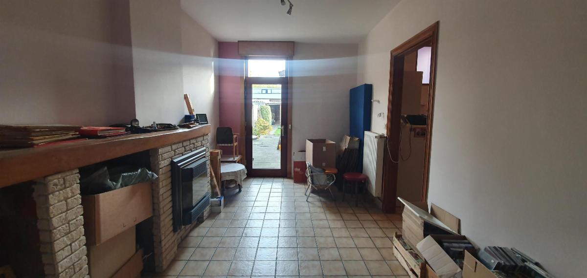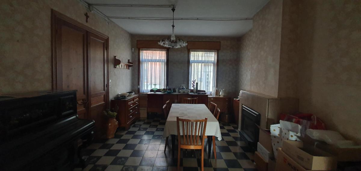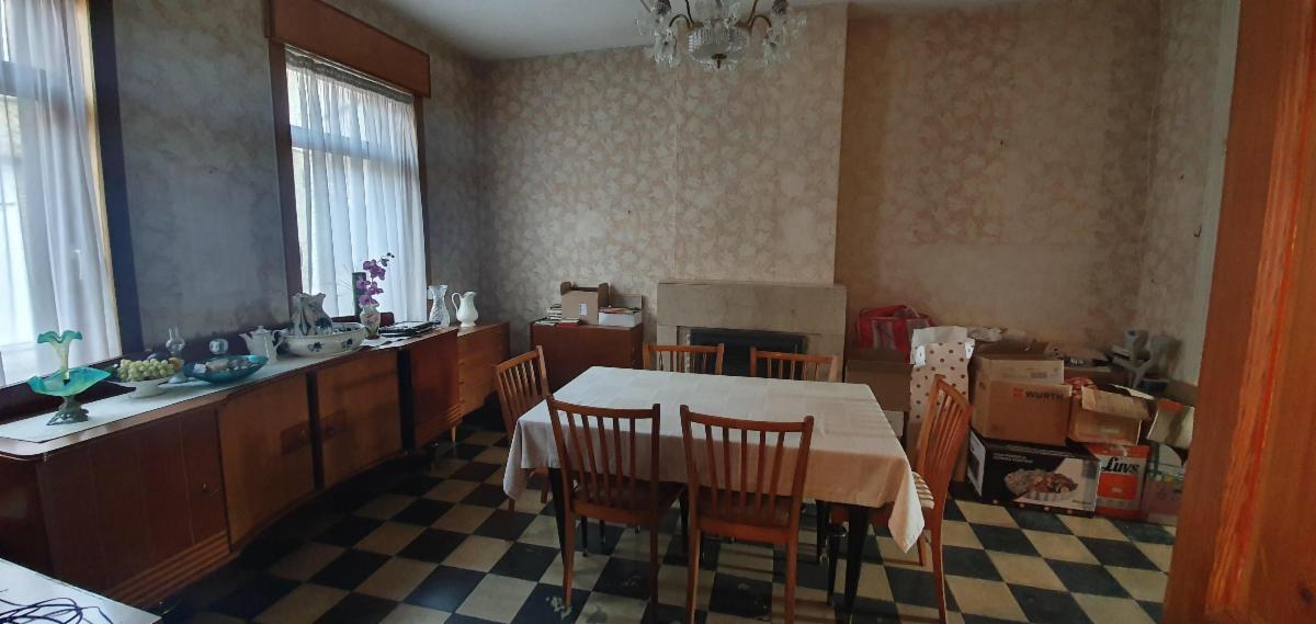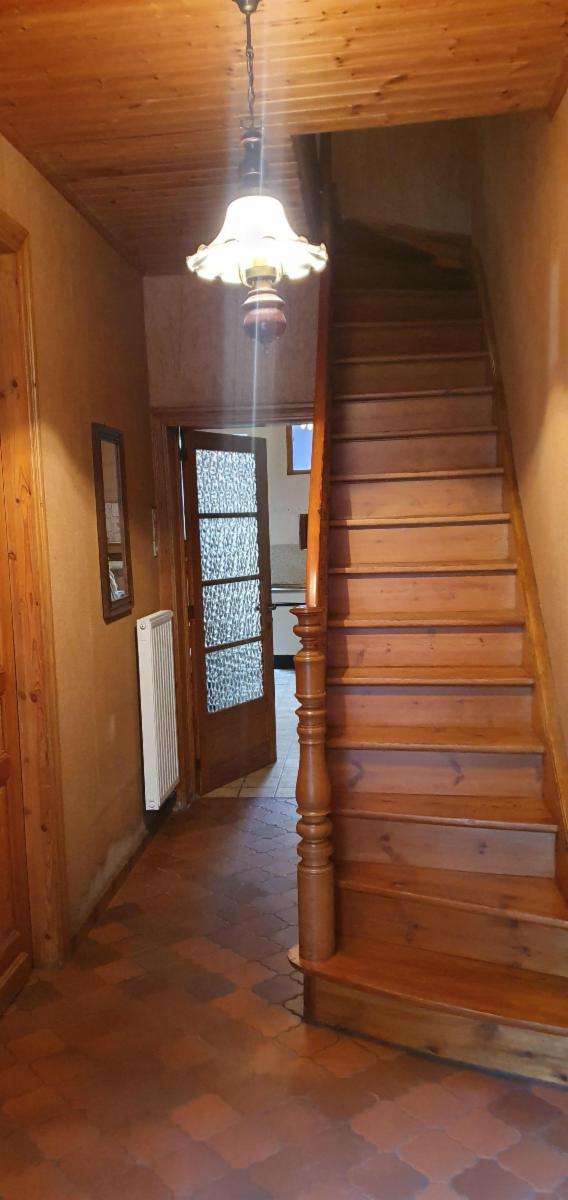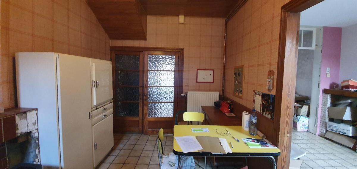 REZ : salle à manger avec feu cassette gaz (+/- 18 m²), salon avec feu cassette (+/- 15 m²), cuisine équipement sommaire avec convecteur gaz (+/- 13 m²), buanderie ( +/- 10 m²), salle de bains, wc, remise et garage donnant sur l'arrière sur la plaine des sapins et l'Ecole maternelle et primaire, cour, jardinet.