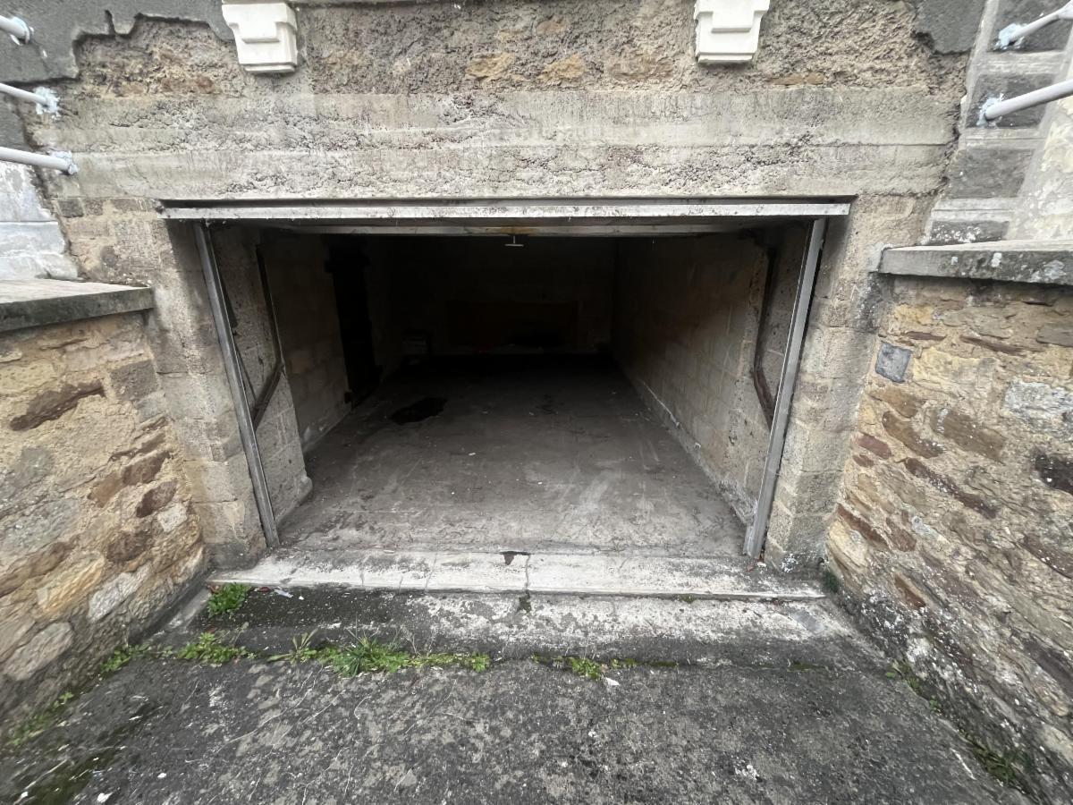 Garage simple et jardin.