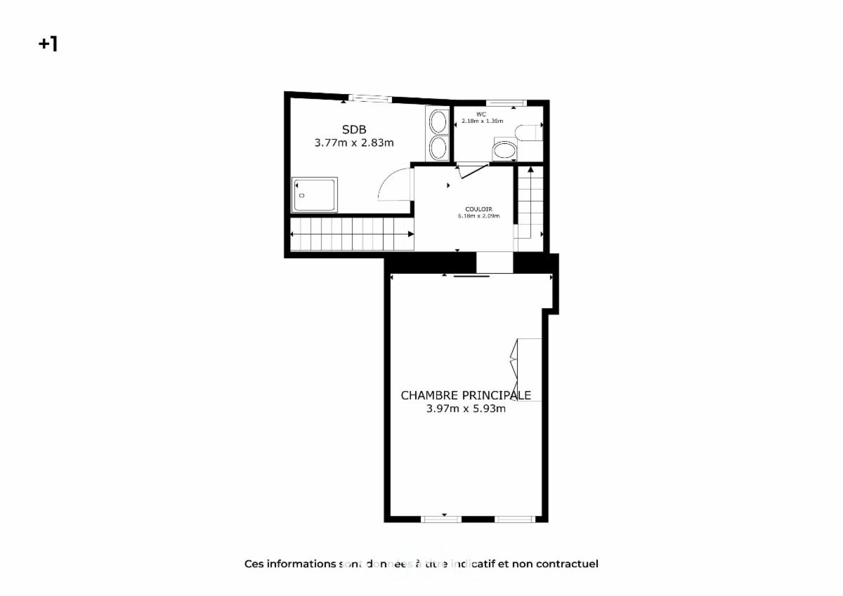 1er étage : couloir, chambre, sdb (avec douche), wc.