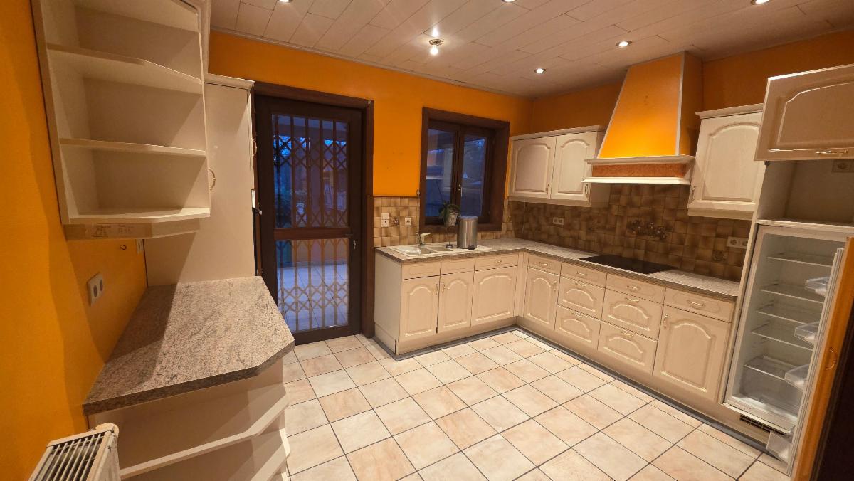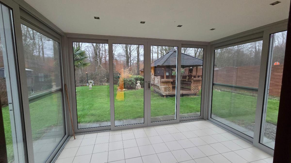 Living (+/- 31 m²), wc, cuisine équipée (+/- 12 m²), salon (+/- 24 m²), 1ère chambre (+/- 20 m²), salle de bains (+/- 3,5 m²), hall, véranda (+/- 11 m²), débarras, jardin, abri de jardin, kiosque en bois