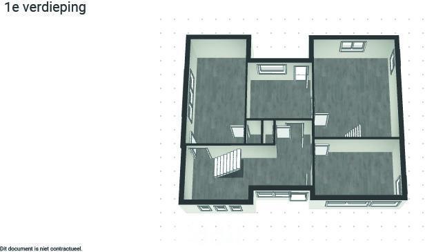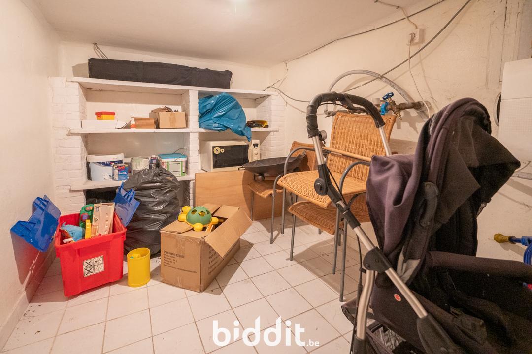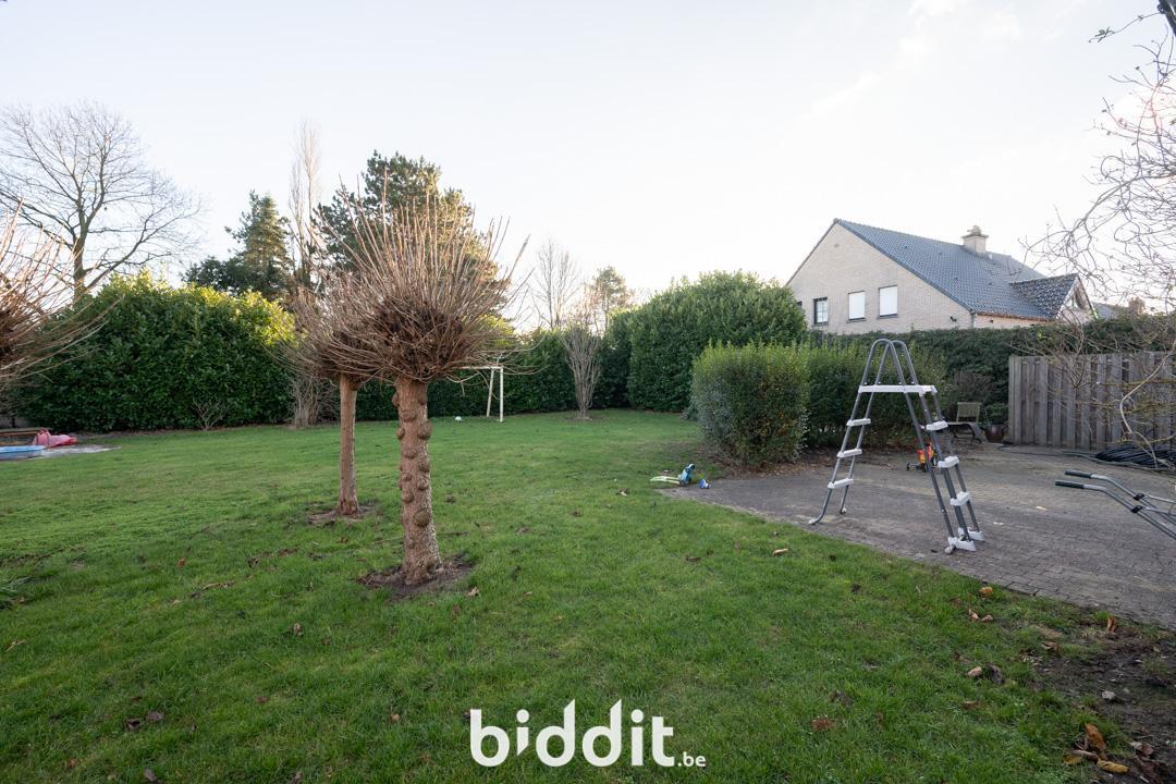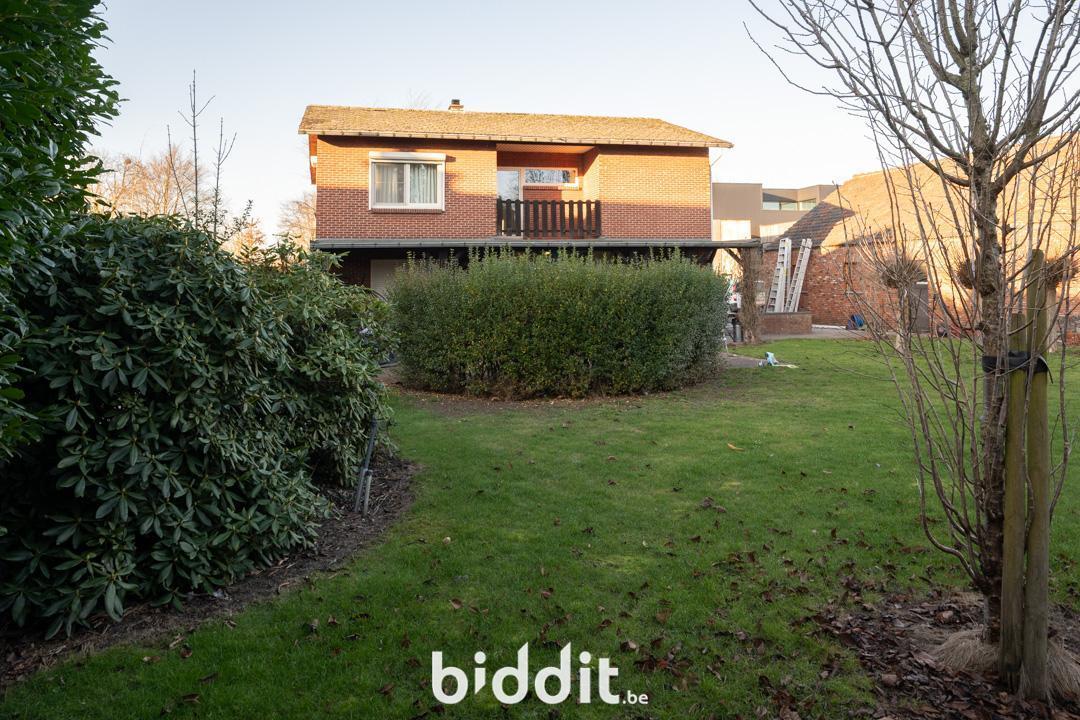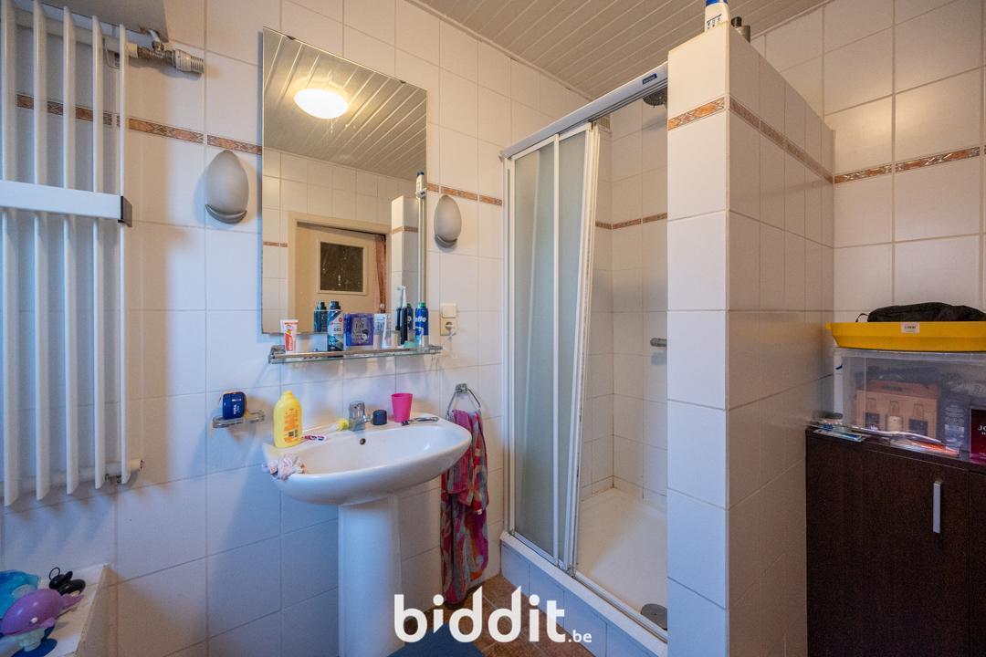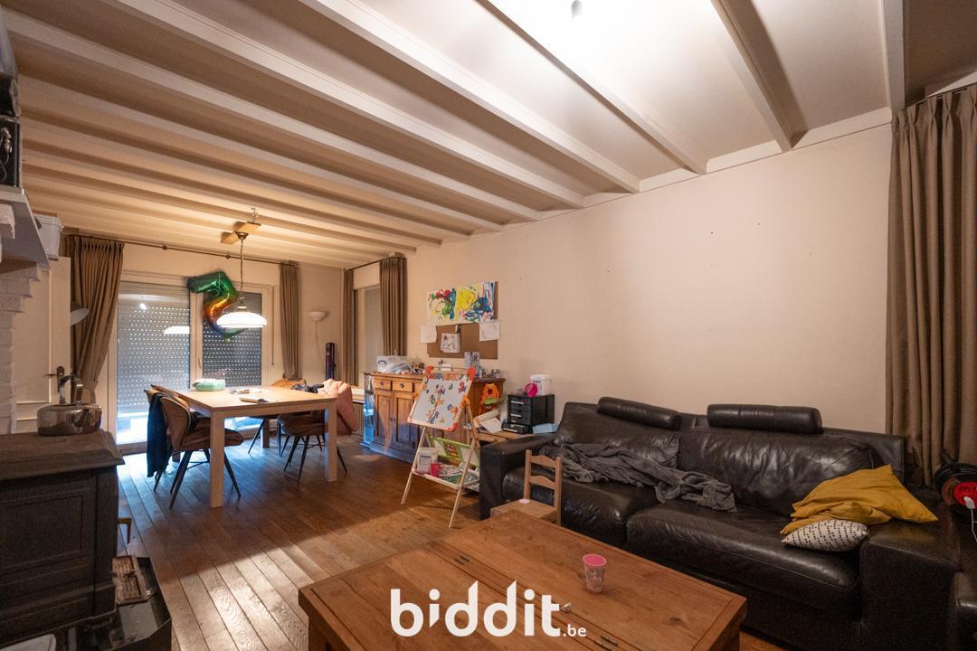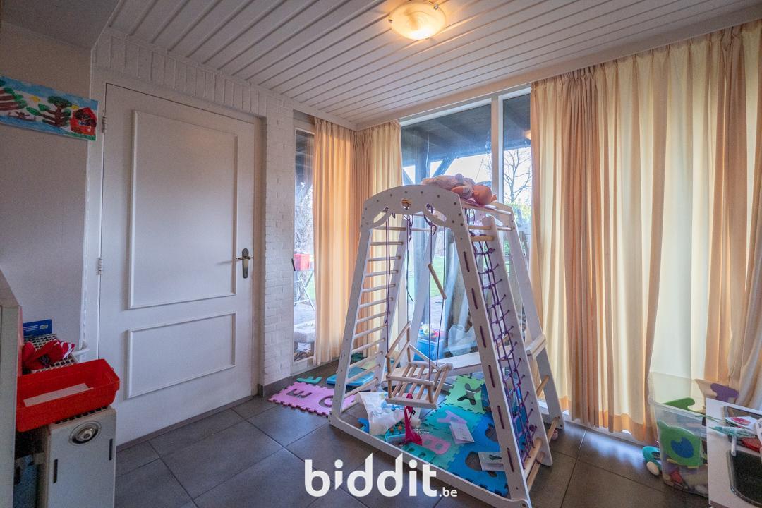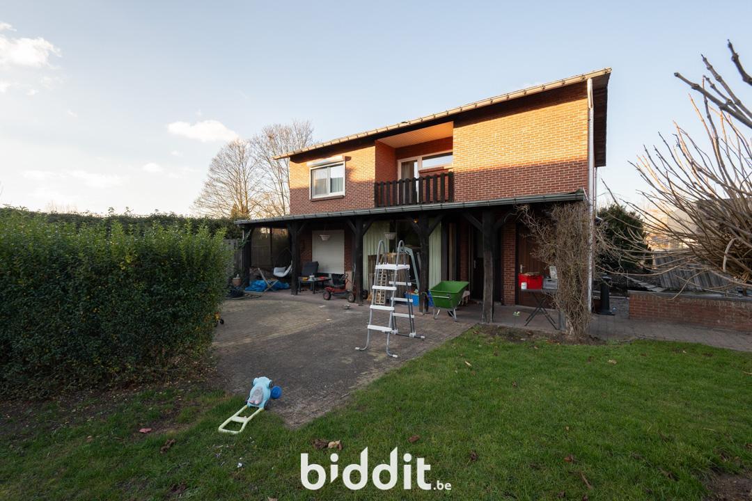 Maison pratique avec jardin agréable à Lommel, comprenant un séjour avec salle à manger, une cuisine séparée avec véranda, une salle de bains avec douche et baignoire, une buanderie, trois chambres, un palier avec placards et un grenier.