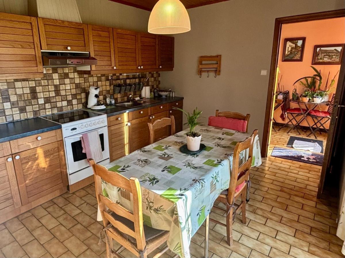 - Au rez-de-chaussée : Hall, cuisine, séjour avec feu ouvert, hall de nuit, trois chambres, une salle de bains, un wc, une buanderie avec accès terrasse.