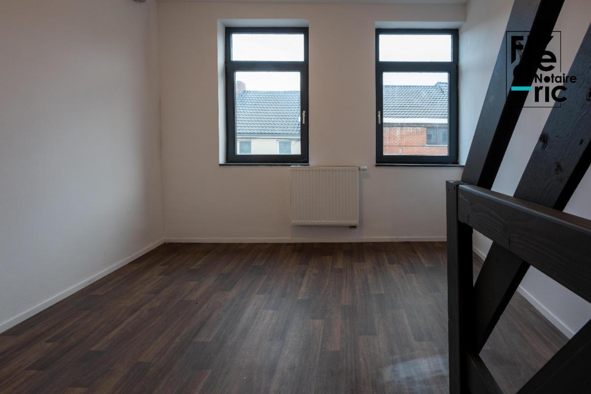 Dans une rue calme, proche des grands axes et de Mons, maison de rangée fraichement rénovée avec 2 chambres.