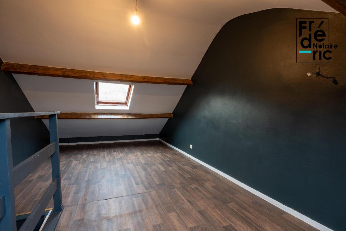 Au deuxième étage, une pièce mansardée occupe toute la surface, illuminée par deux vélux.