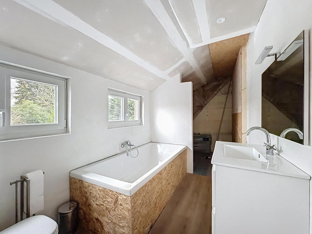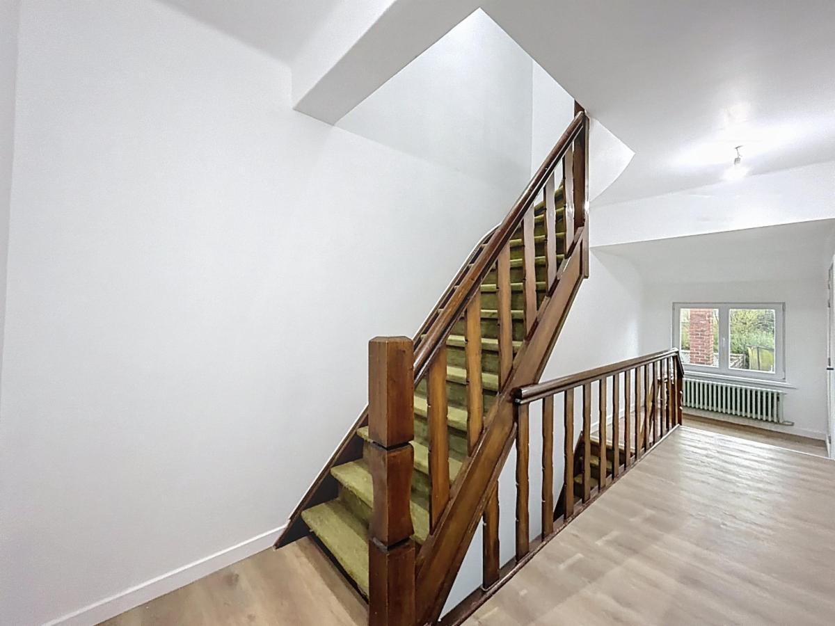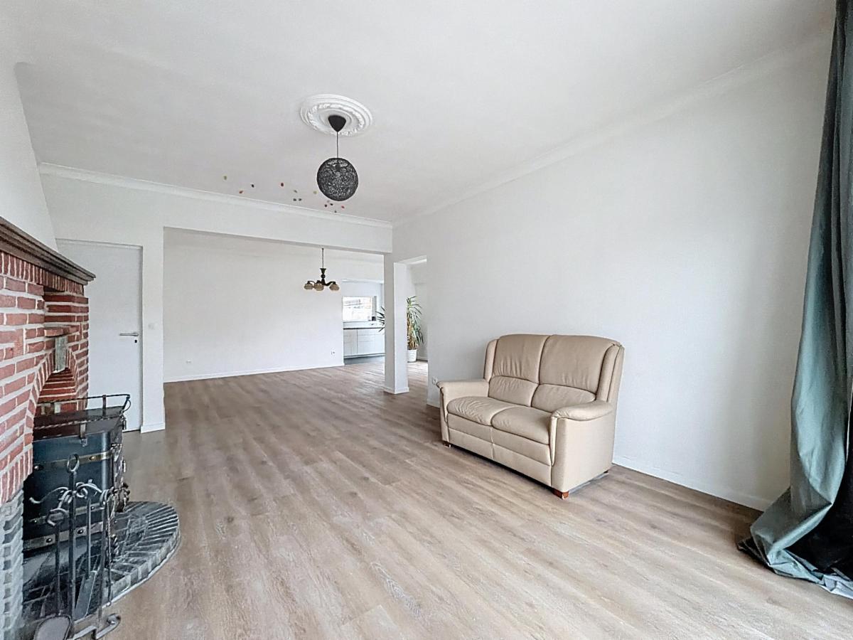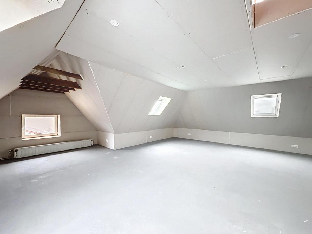 Au cœur de Lovendegem, vous trouverez cette magnifique maison familiale sur un terrain de 637 m². Construite en 1951, avec une grande attention portée à la solidité structurelle et à la finition, et entièrement rénovée depuis 2022 en respectant les normes énergétiques actuelles, cette maison dispose d'un certificat PEB de classe B et offre tout ce dont vous avez besoin. Cette maison comprend un spacieux salon et séjour, une cave sèche, une cuisine moderne équipée, une salle de douche et des toilettes séparées au rez-de-chaussée. Au premier étage, on trouve une salle de bains avec toilettes. La maison dispose de 3 chambres à coucher complètes au premier étage et d'un espace polyvalent au deuxième étage d'environ 60 m², accessible par un escalier fixe. Cet espace a été isolé et fini en plaques de plâtre, équipé d'un nouveau plancher en béton, possède 4 fenêtres et offre de nombreuses possibilités d'aménagement ou peut être utilisé comme grand espace ouvert. Au-dessus, il y a encore un grenier qui peut servir de petite chambre ou de rangement.