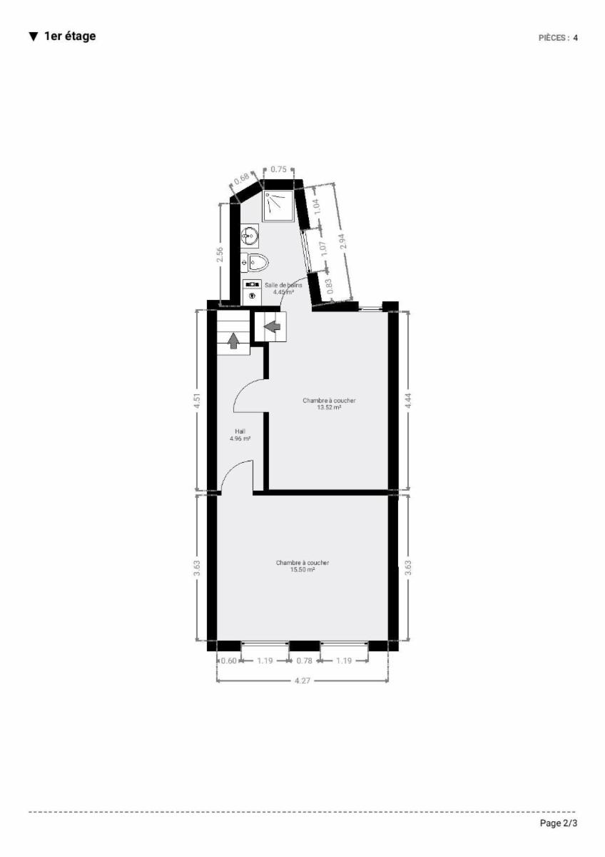 - Au premier étage : d'un hall, de deux chambres à coucher et d'une salle de bains ;