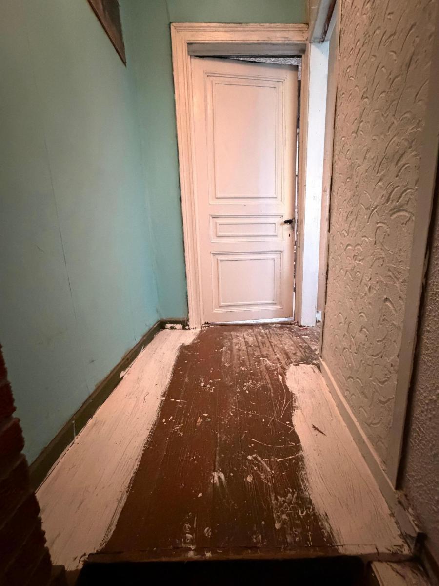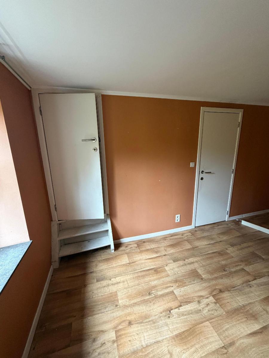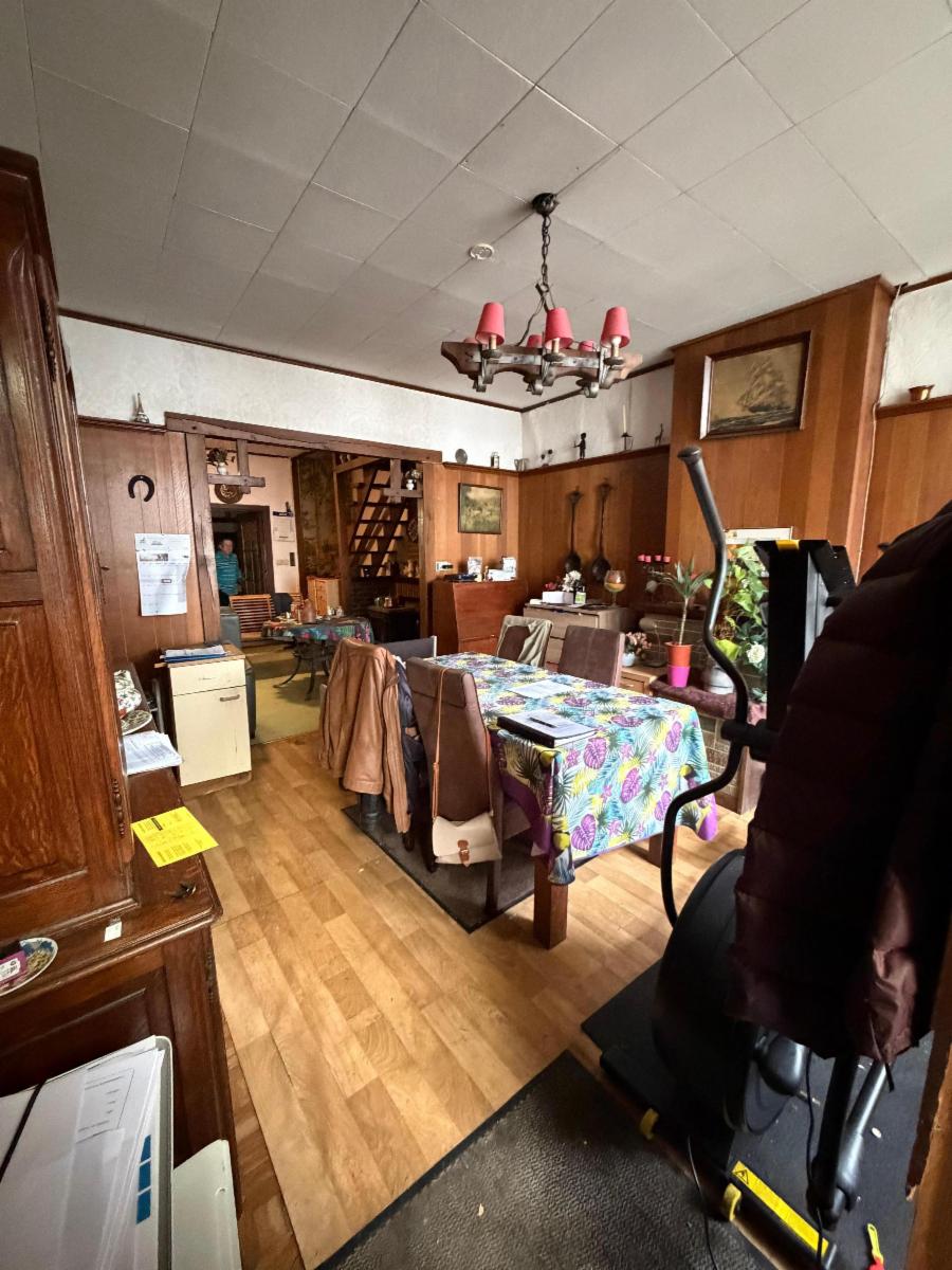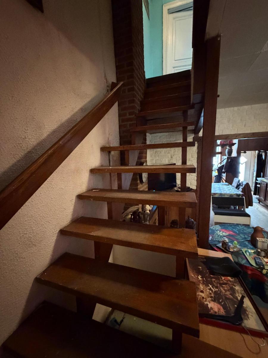 Charmante maison à rénover, composée d’un petit hall d’entrée, d’une cuisine non équipée et salle à manger, de deux grandes chambres et deux plus petites, une salle de bain avec WC à rafraîchir, et d’un grenier aménageable. Le bien dispose d’une cave en dessous des pièces de vie accessible via une trappe située sous l’escalier. Le bien est partiellement équipé de double vitrage (à l’arrière du bâtiment). Poêle à mazout. Un joli jardin se situe à l’arrière, avec passage sur le côté de la maison.