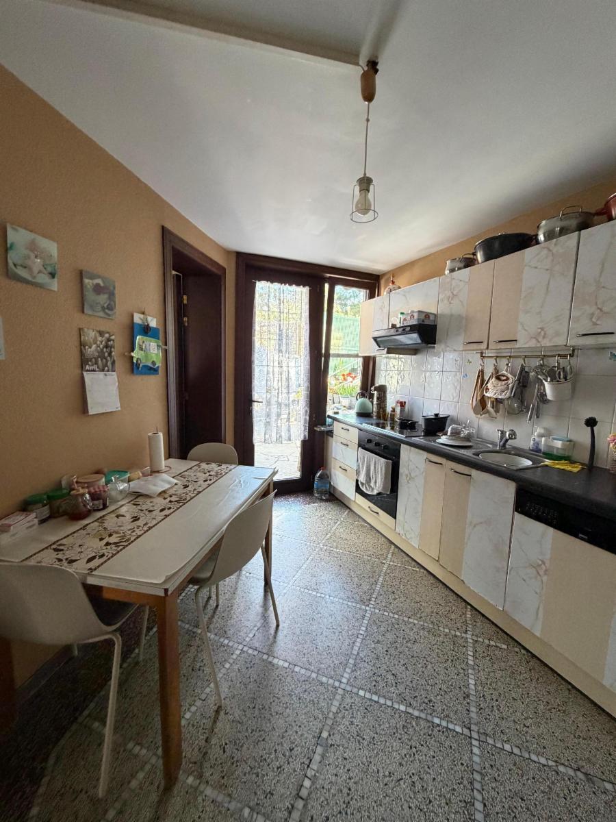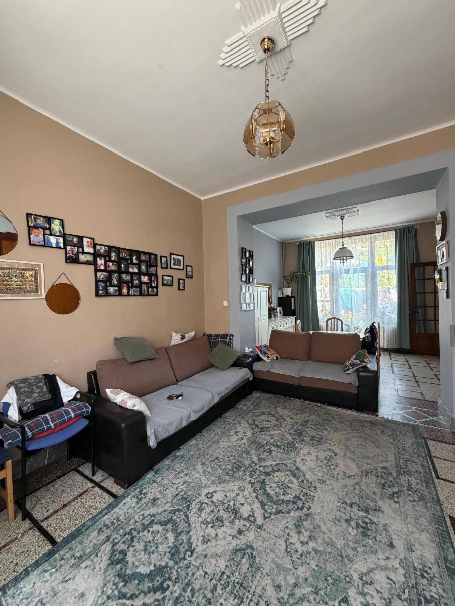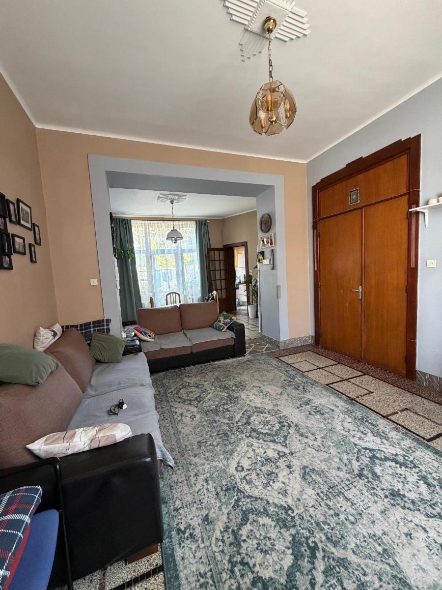 Rez-de-chaussée : hall d’entrée, beau living donnant sur la terrasse et le jardin, un WC séparé et une cuisine semi équipée