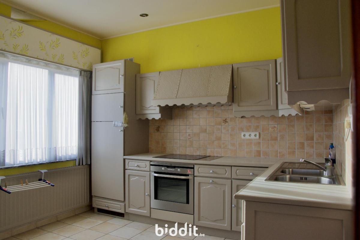 Située à Awans, rue Stockis, 9, une maison quatre façades d’environ 146 m² habitable (superficie PEB), se composant comme suit :