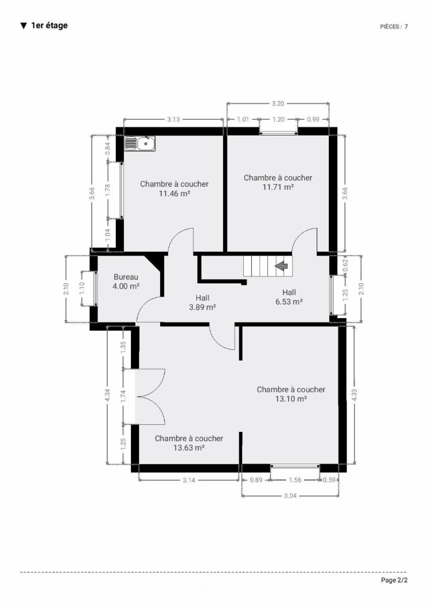 - Au 1er étage : Un hall de nuit, bureau et 4 chambres.