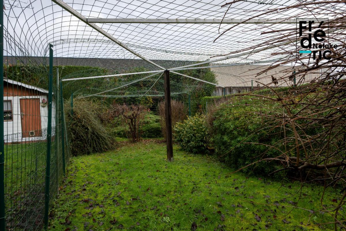 Actuellement, une grande volière/enclos à chat est présente dans le jardin (visible sur les photos). Elle est accessible depuis la cave via une chatière et fait partie de la vente, au même titre que le chalet de jardin.