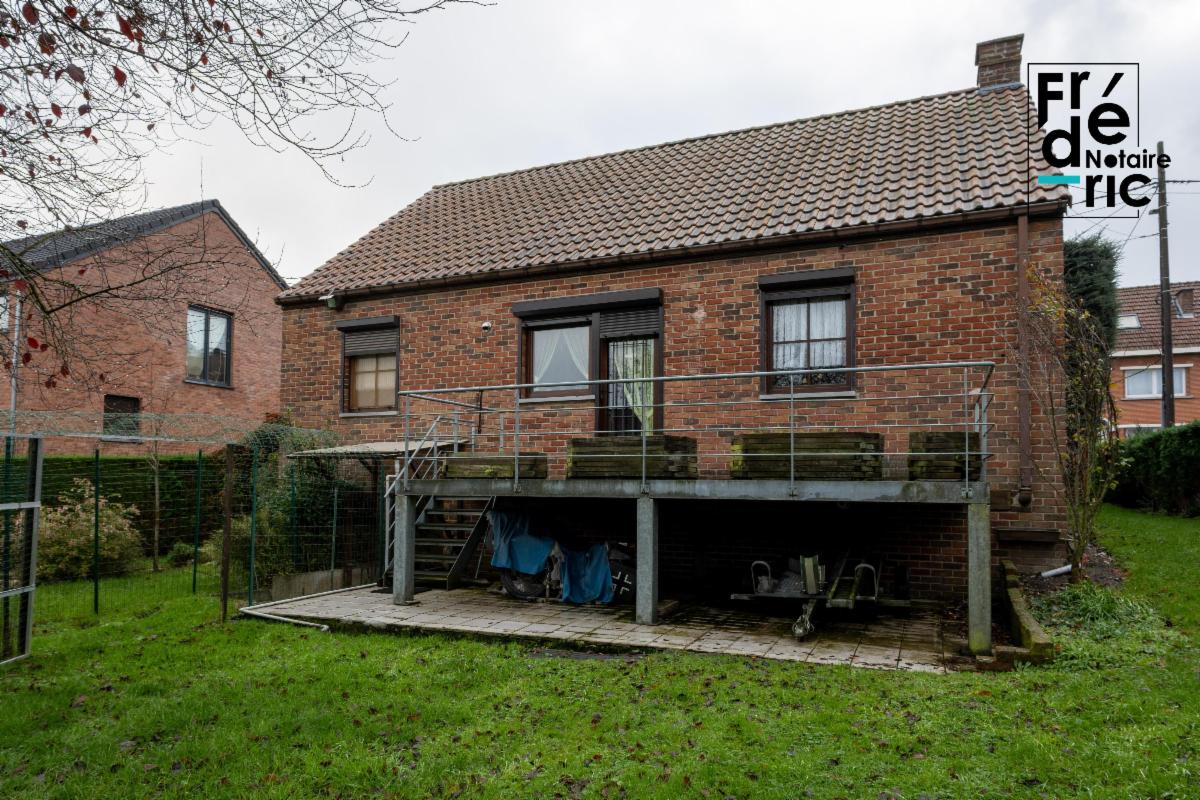Au rez-de-chaussée, on retrouve un vestibule d'entrée, un living, une cuisine, une chambre, la salle de douche et un garage.