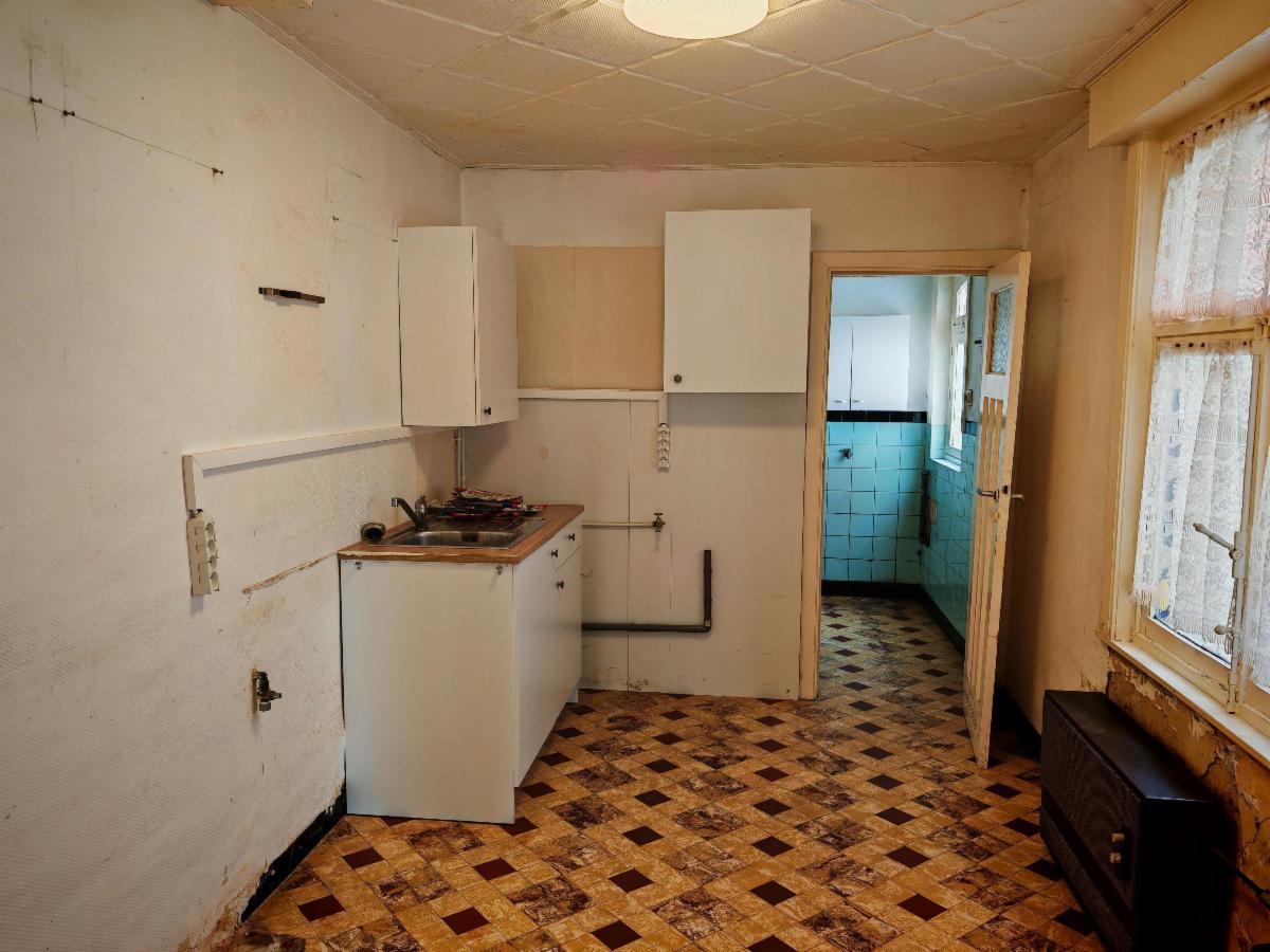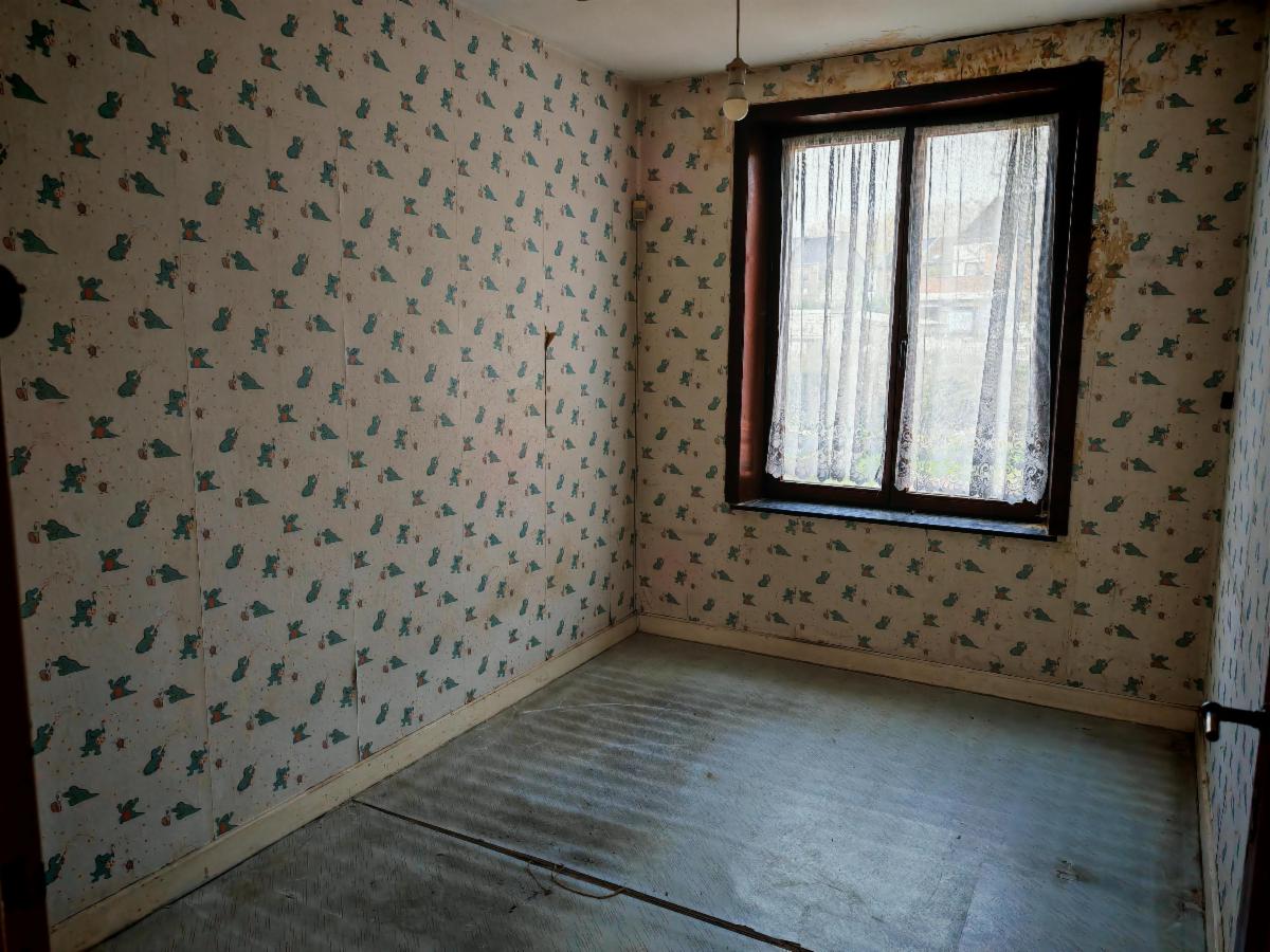 - Rez-de-chaussée : hall d'entrée, salon, salle à manger, cuisine non équipée, salle de bain (baignoire + wc)
