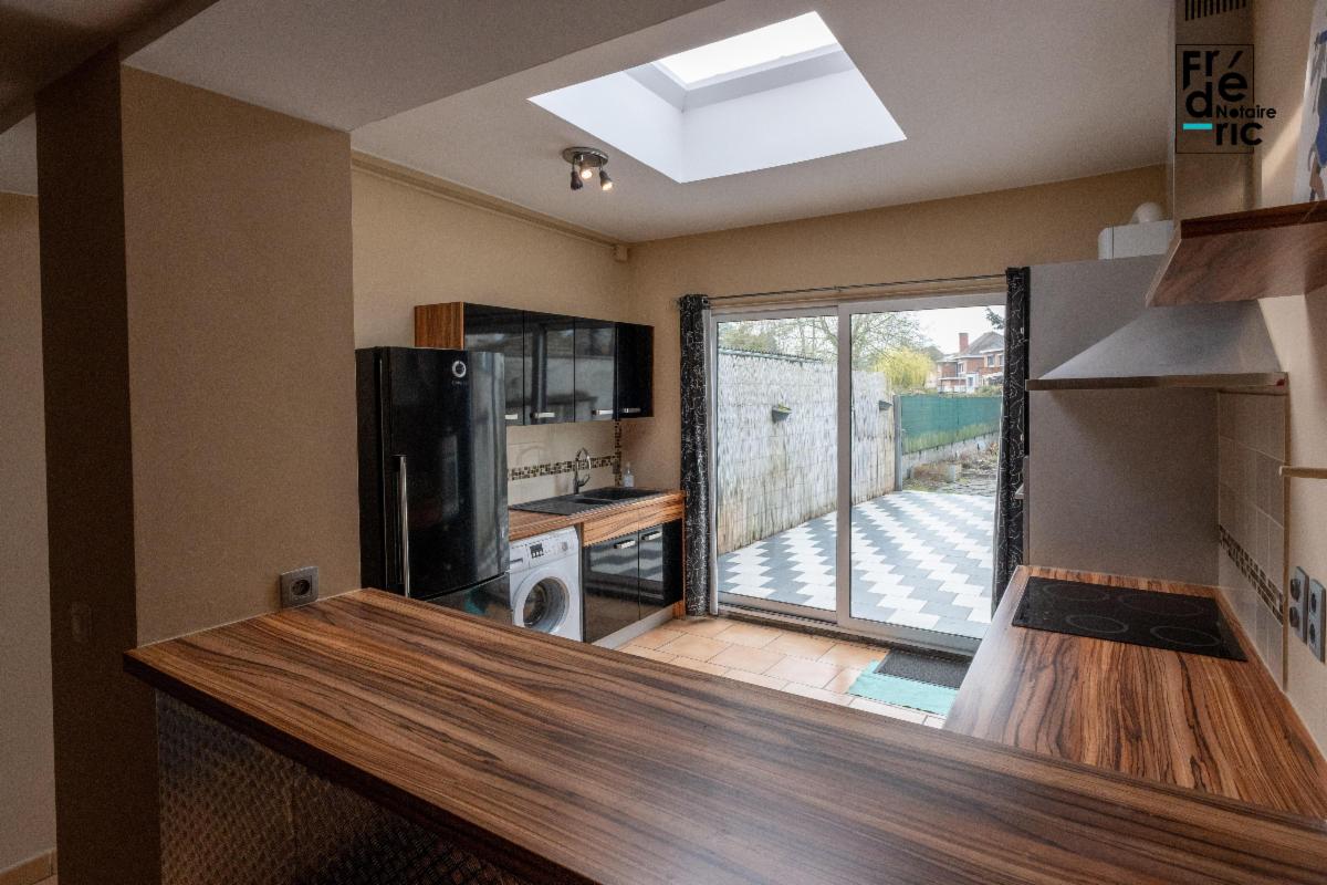 A Nimy, à proximité de la place, maison une chambre avec jardin et grande terrasse exposée sud. Au centre de Nimy, donc proche de l'autoroute et de Mons, la maison se compose de deux étages aménagés et d'un grenier. Au rez-de-chaussée, salon, salle à manger et cuisine en enfilade amènent à la terrasse et au jardin. Au premier étage, le hall de nuit donne accès à la chambre d'un côté et à une grande salle de douche de l'autre côté. Au second étage se trouve un grenier aménageable pour éventuellement créer une seconde chambre dans le bien. La maison est prête à vivre avec chaudière à condensation gaz récente et cuisine équipée avec lave linge intégré. Une partie des peintures a été récemment refaite.